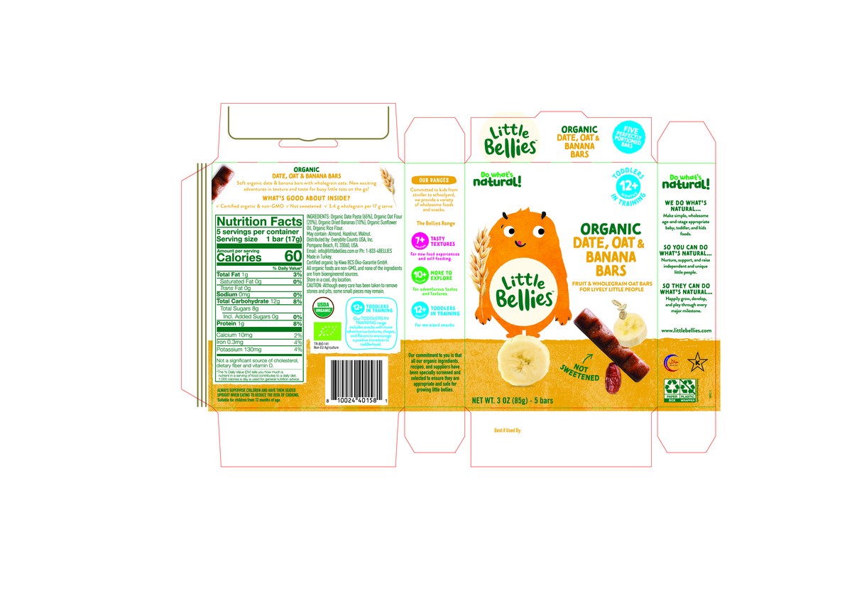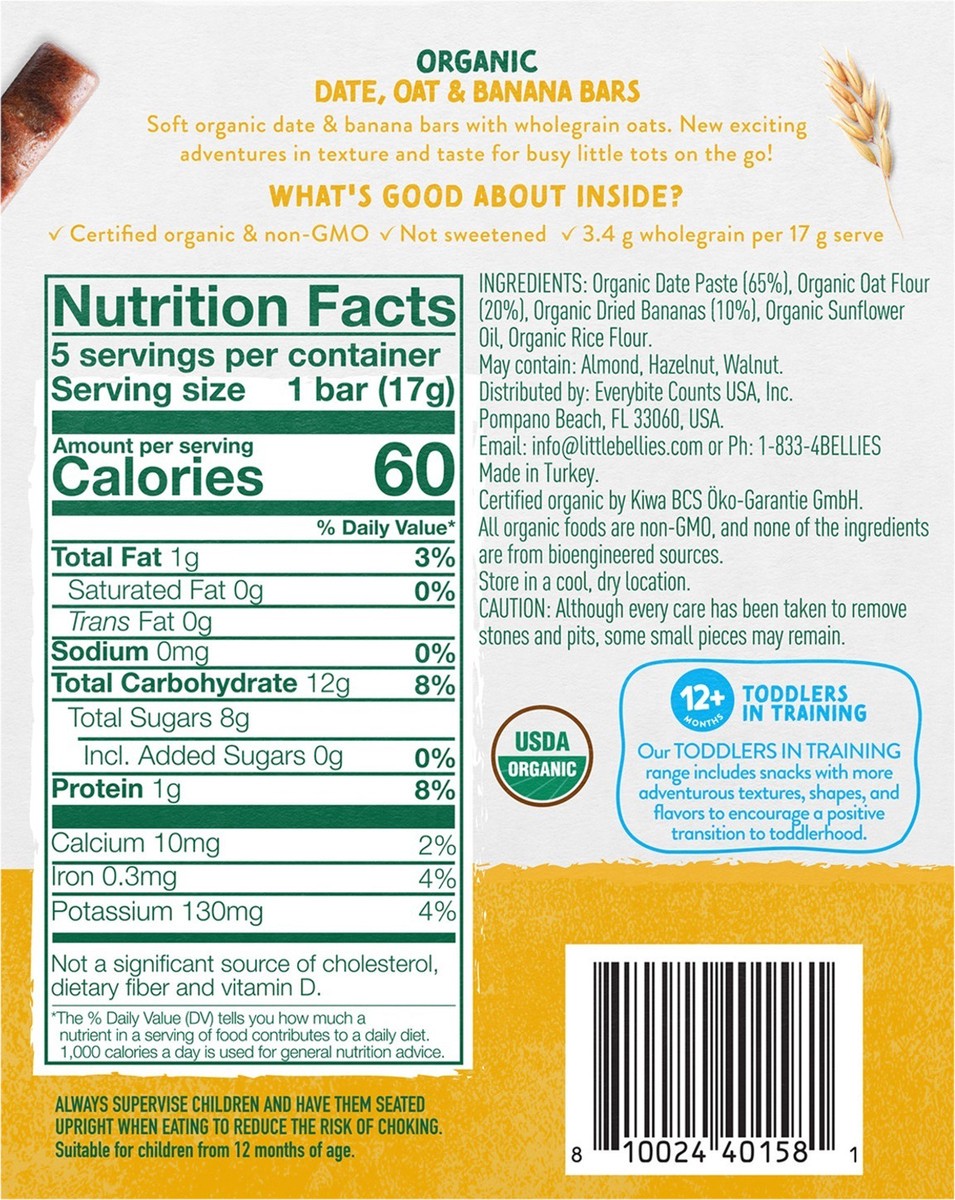 Little Bellies Organic Date, Oat & Banana Bars - 3 oz, 5 Bars
