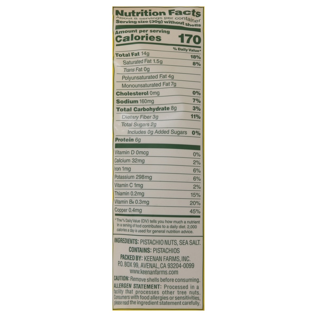 Keenan Farms California Pistachios Roasted With Sea Salt