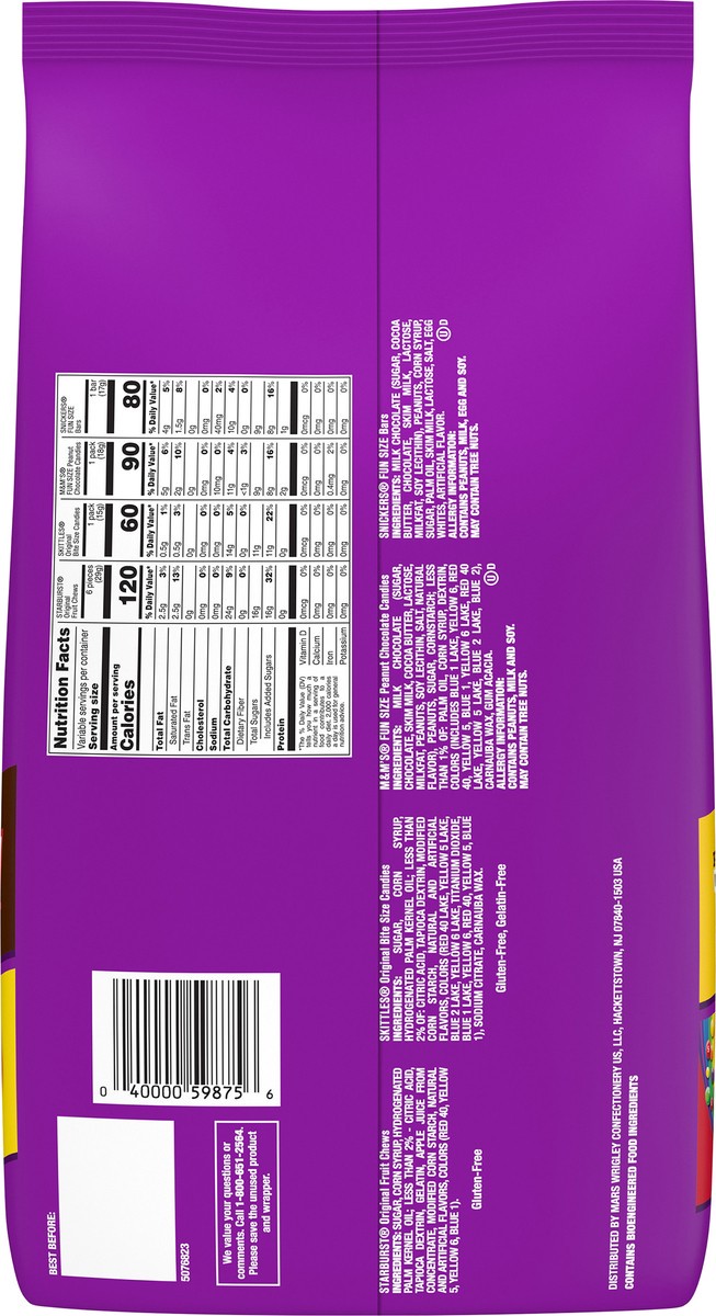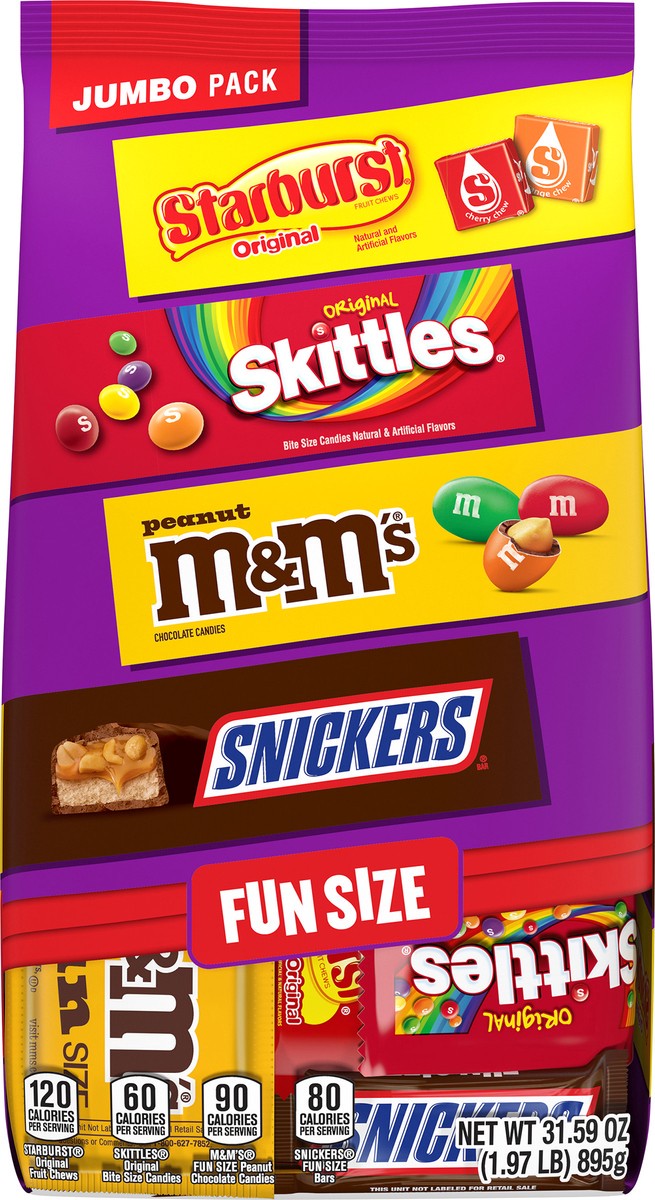 Wrigley M&M''S, SNICKERS, SKITTLES & STARBURST Fun Size Candy Variety Pack, 31.59 Oz Jumbo Bag