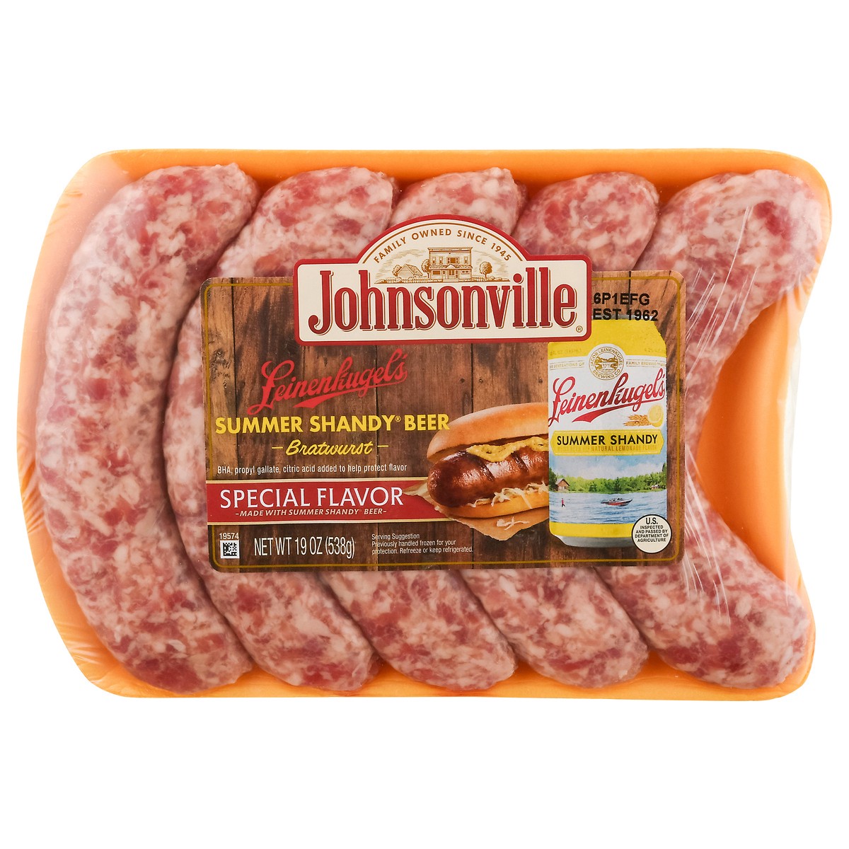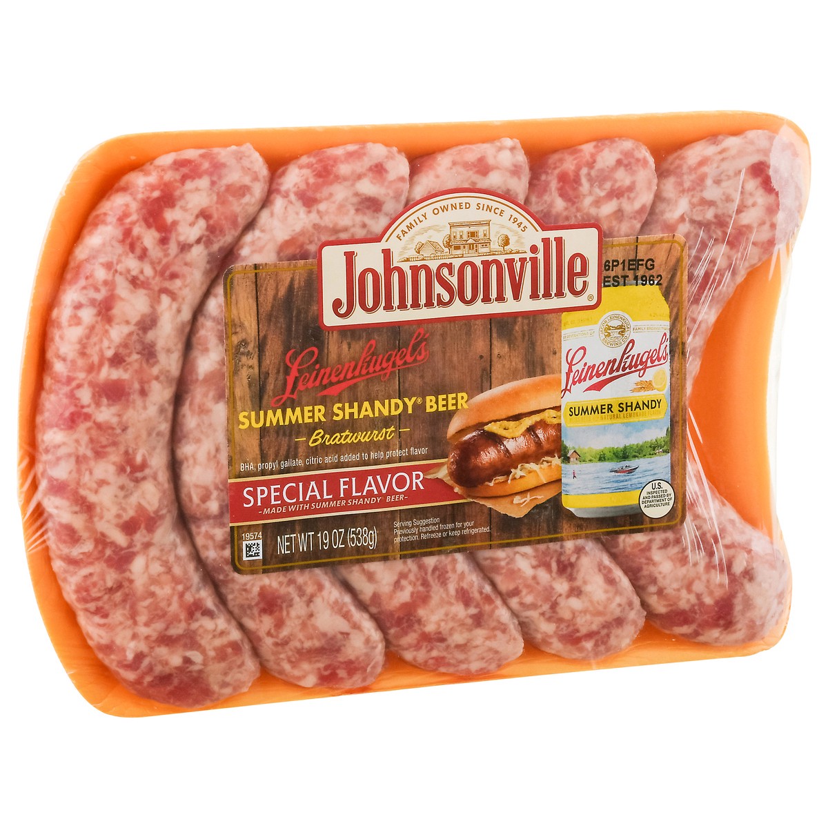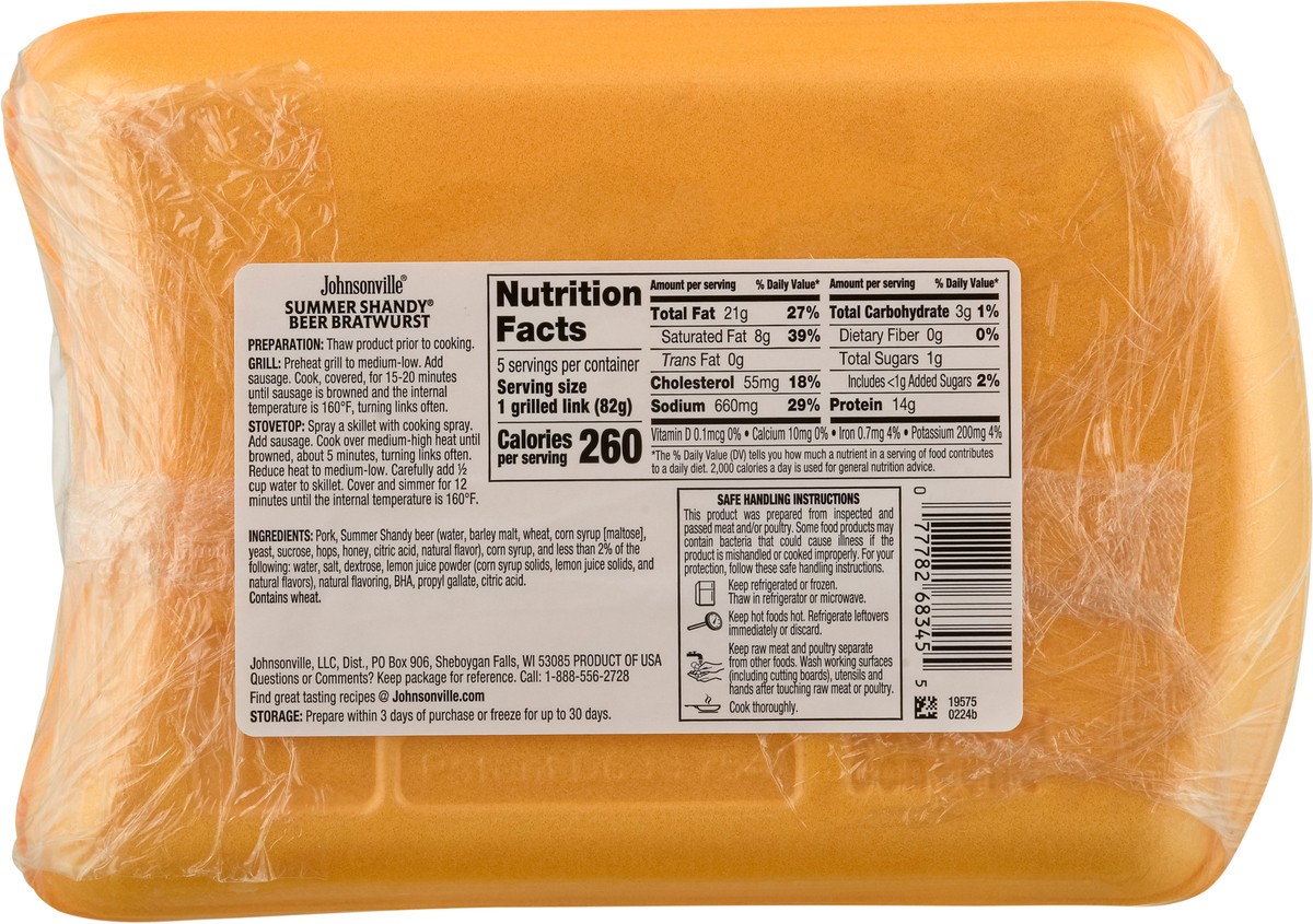 Johnsonville Leinenkugel's Summer Shandy Beer Bratwurst 19 oz
