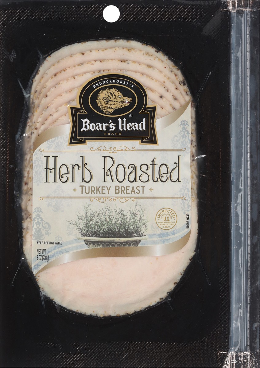 Seasoned with aromatic and colorful herbs including rosemary, garlic, sea salt & cracked black pepper, Boar’s Head Herb Roasted Turkey Breast brings a bright and herbaceous flavor to any application.