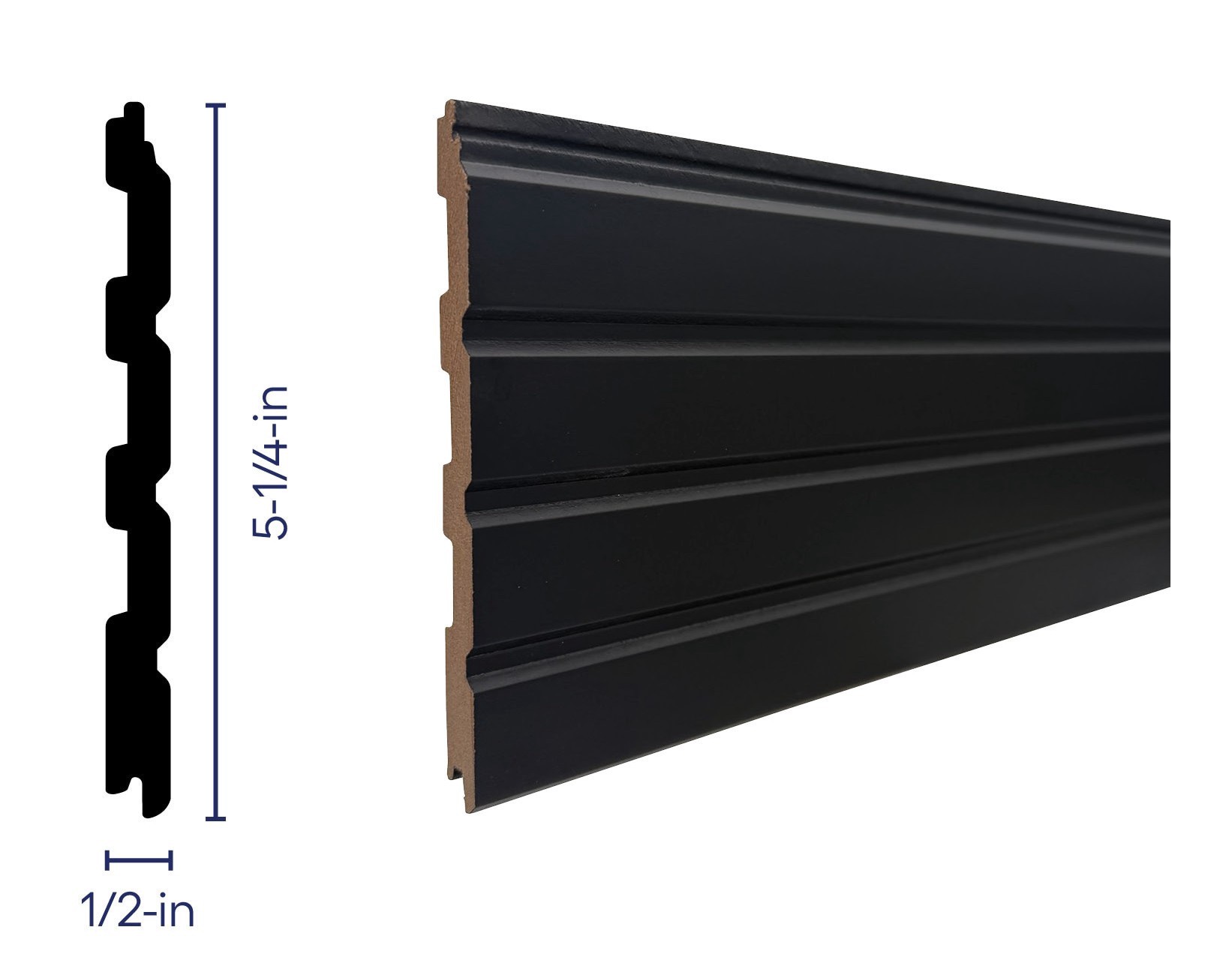 Origin 21 1/2-in x 5-1/4-in x 4-ft Finished Black MDF Tongue and groove Fluted Wall Plank