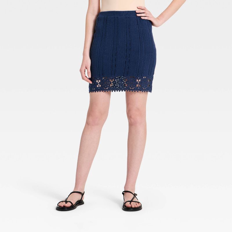 Women's Openwork Sweater A-Line Skirt - Universal Thread™ Navy Blue XS
