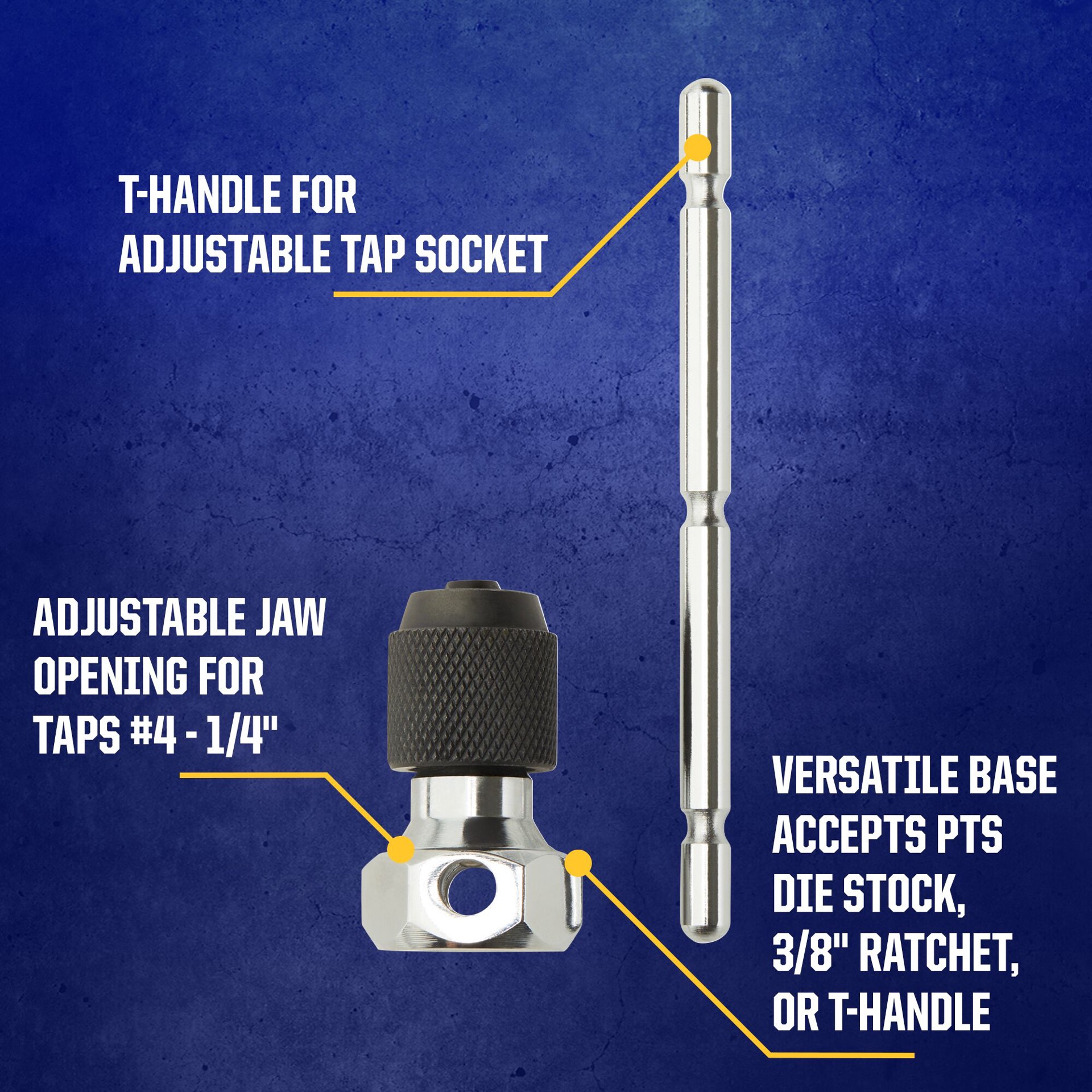 For use with #0 to 1/4-In taps. Durable construction. T-handle shape. Long lasting.
