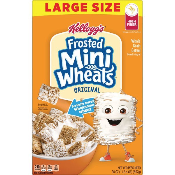 - 20oz box of delicious Kellogg's Frosted Mini-Wheats Original breakfast cereal; Packaged for freshness and great taste