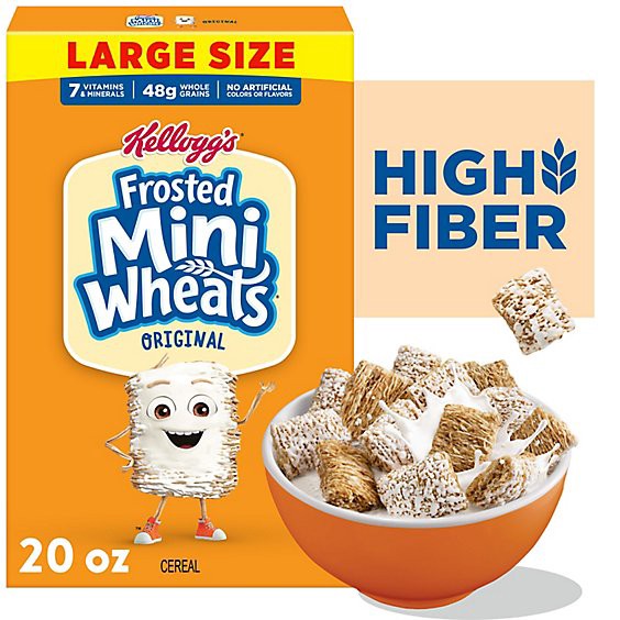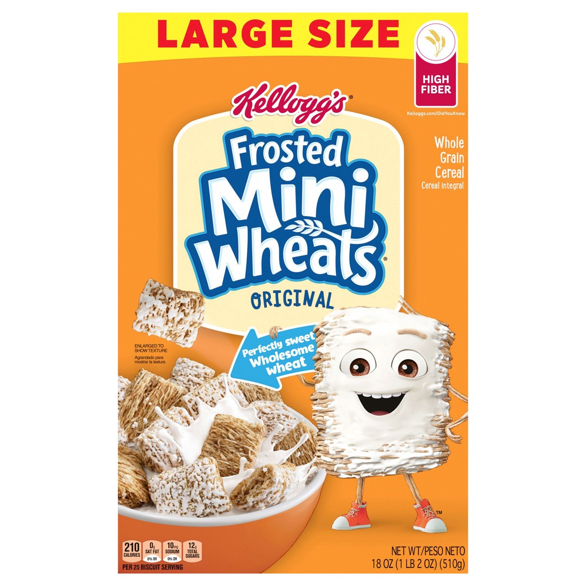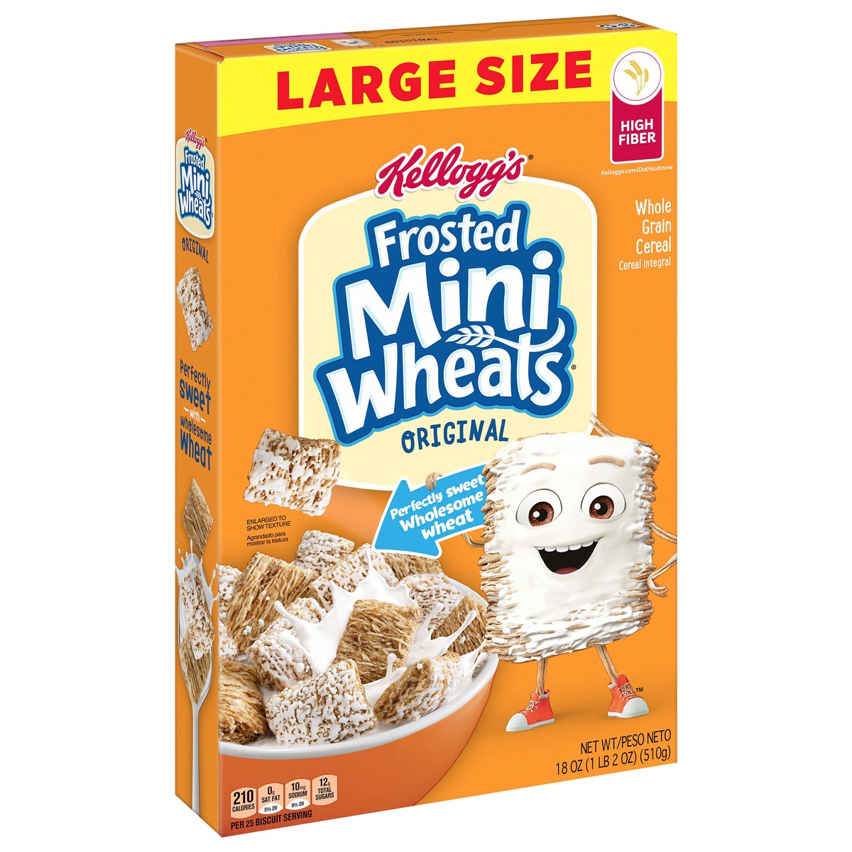 Greet the day with Kellogg's Frosted Mini-Wheats Original cereal, a wholesome, low-fat breakfast cereal that's built for big days. These bite-sized biscuits pack a hearty crunch with crispy layers of …