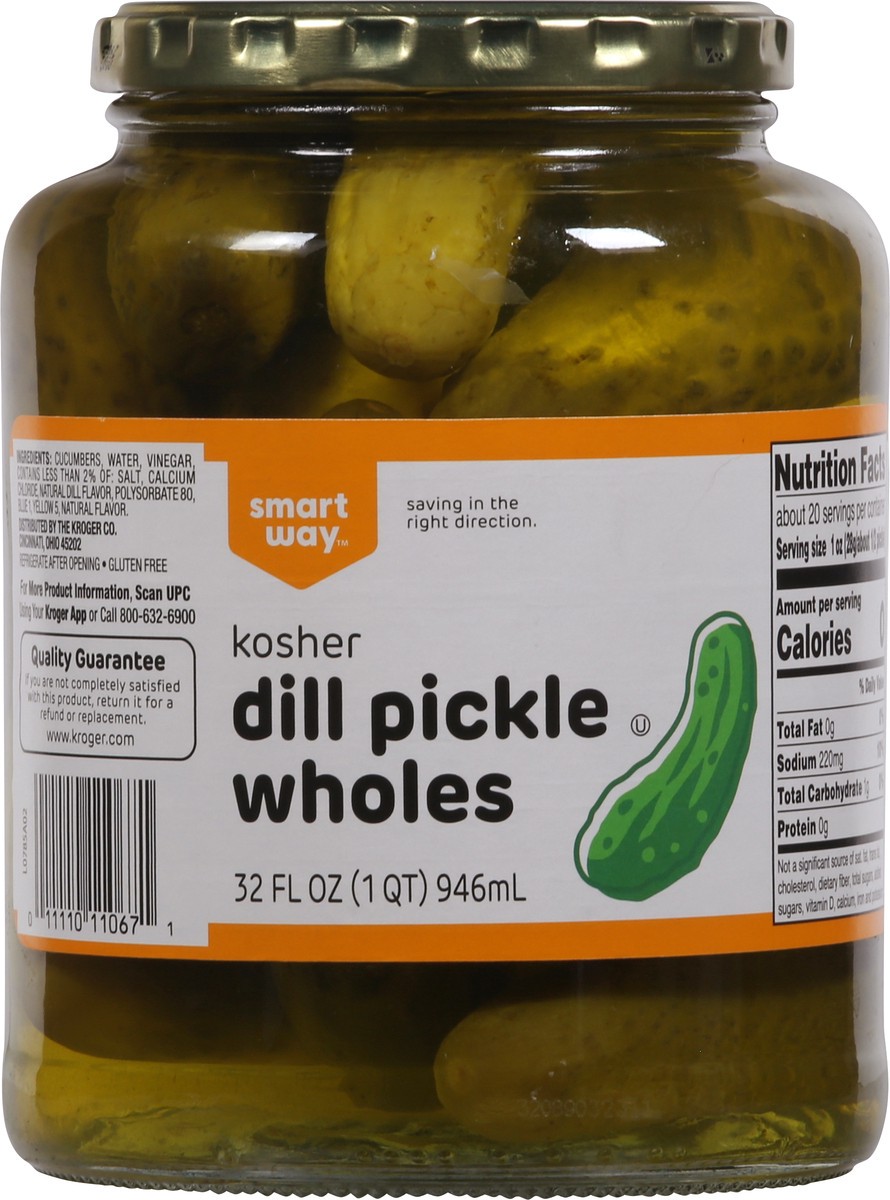 Cucumbers, Water, Vinegar Contains Less than 2% of Salt, Calcium Chloride, Natural Dill Flavor, Polysorbate 80 Blue 1, Yellow 5, Natural Flavor.