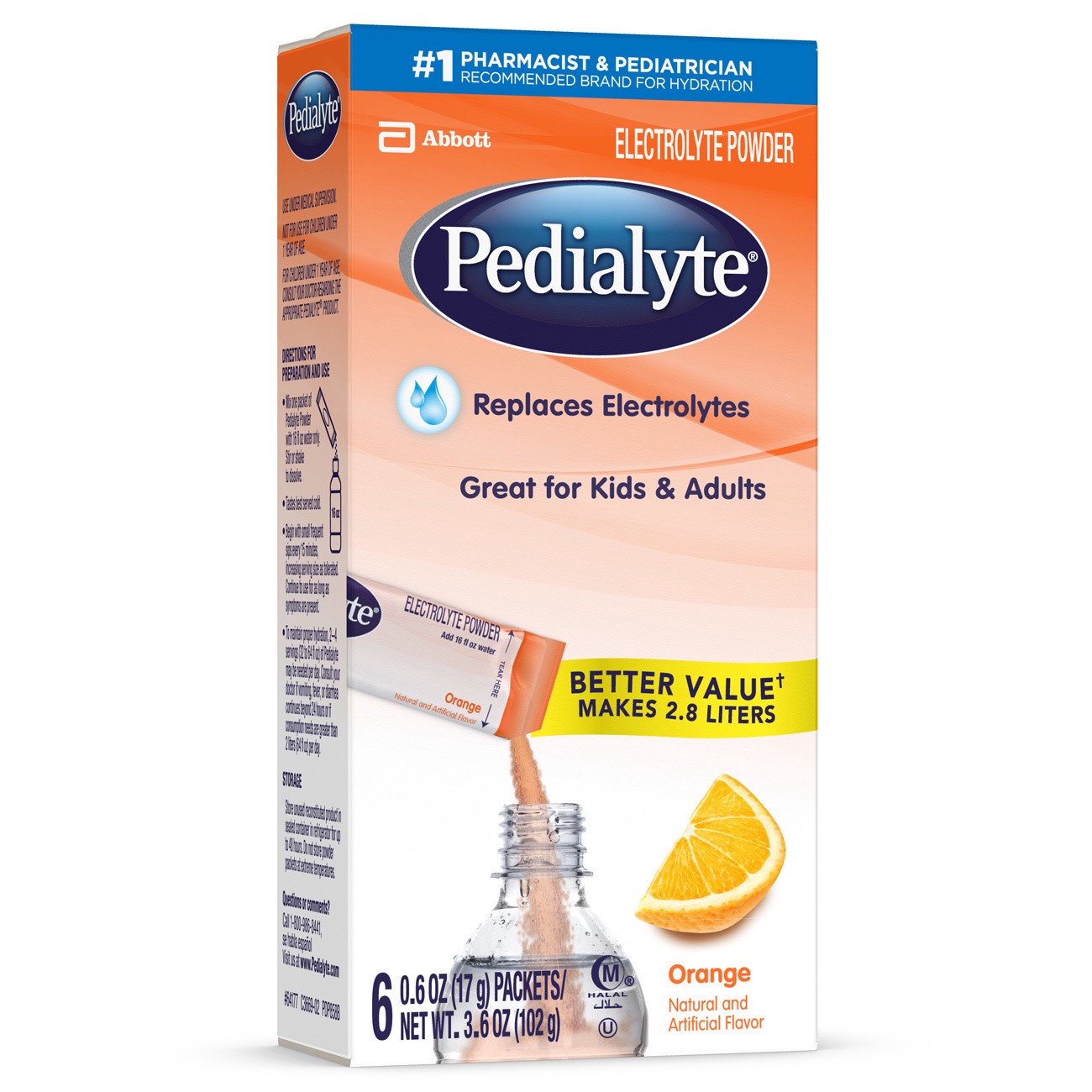 No. 1 Pharmacist & pediatrician recommended brand for hydration. Replaces electrolytes. Great for kids & adults. Better value (versus Pedialyte liquid liters) makes 2.8 liters. Designed for fast\, eff…