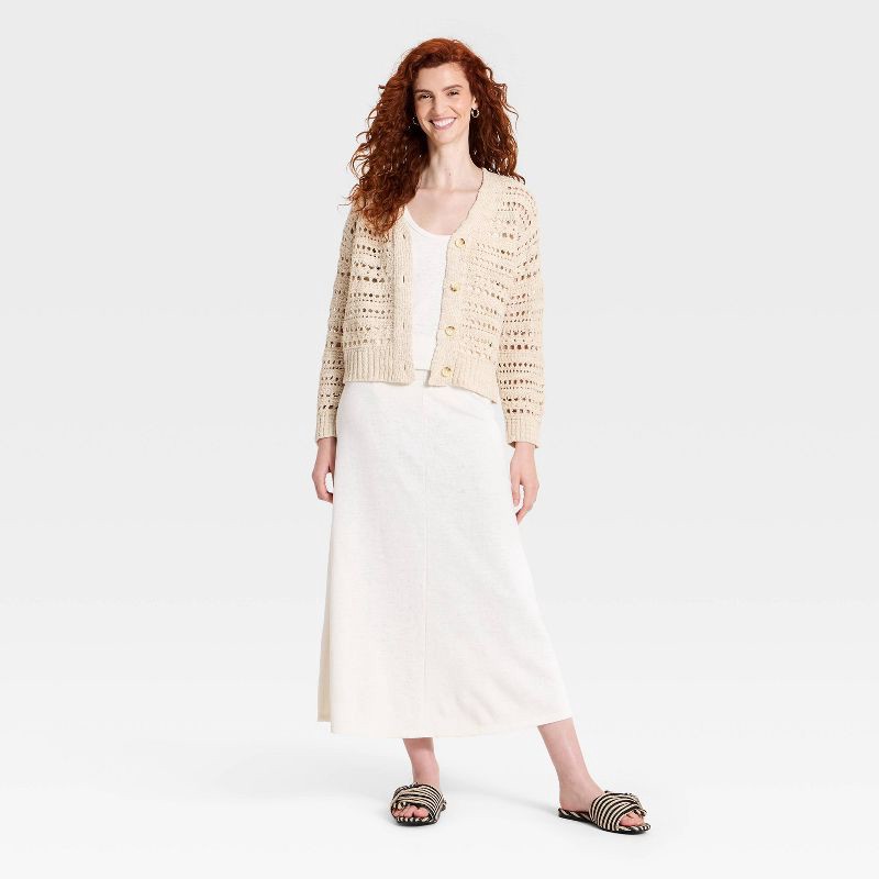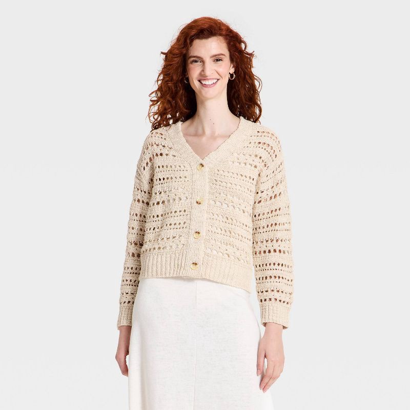 Women's Openwork Cardigan Sweater - Universal Thread™ Cream XS