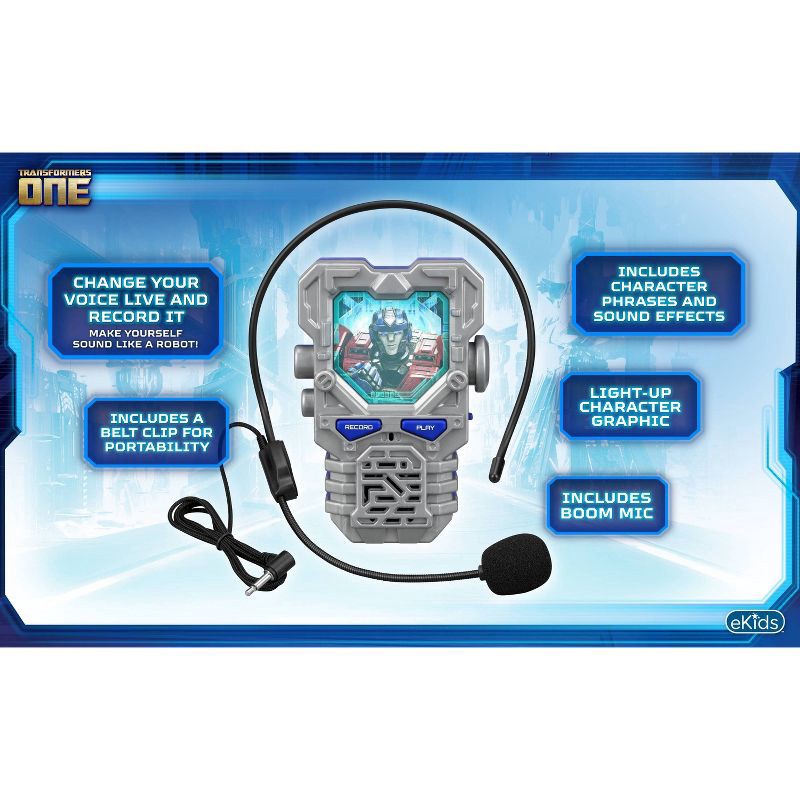 The Transformers Toy Voice Changer features a cool design inspired by the new film, Transformers ONE. Speak into the boom mic for robotic voice changing, then record and play back your messages with t…