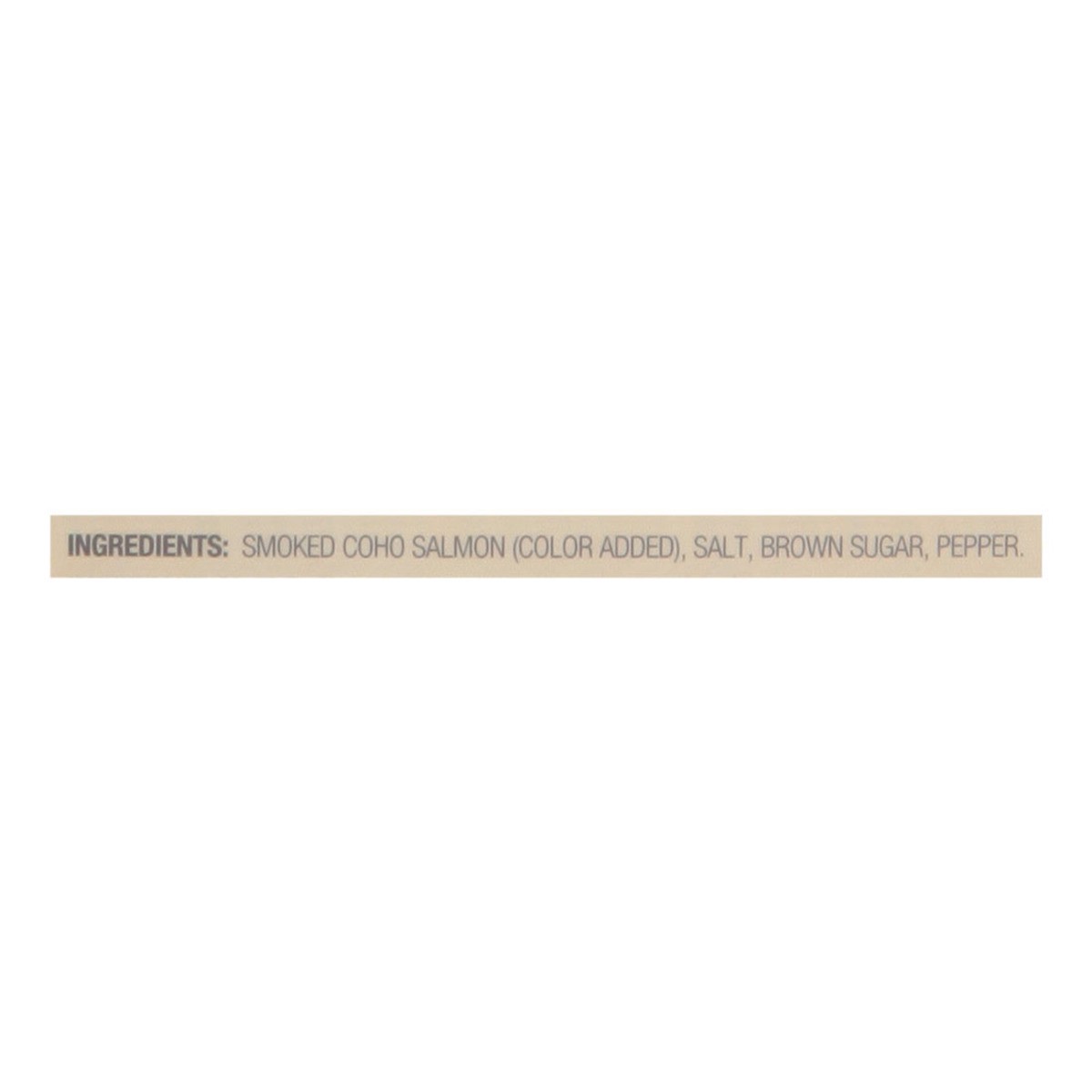 Smoked Coho Salmon (Color Added), Salt, Brown Sugar, Pepper.