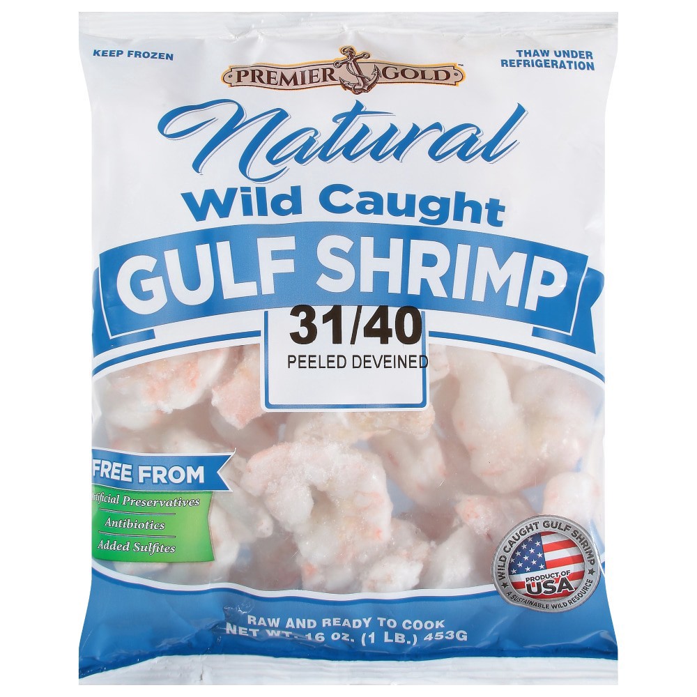 Premier Gold Peeled & Deveined Raw Gulf Shrimp 31-40 ct