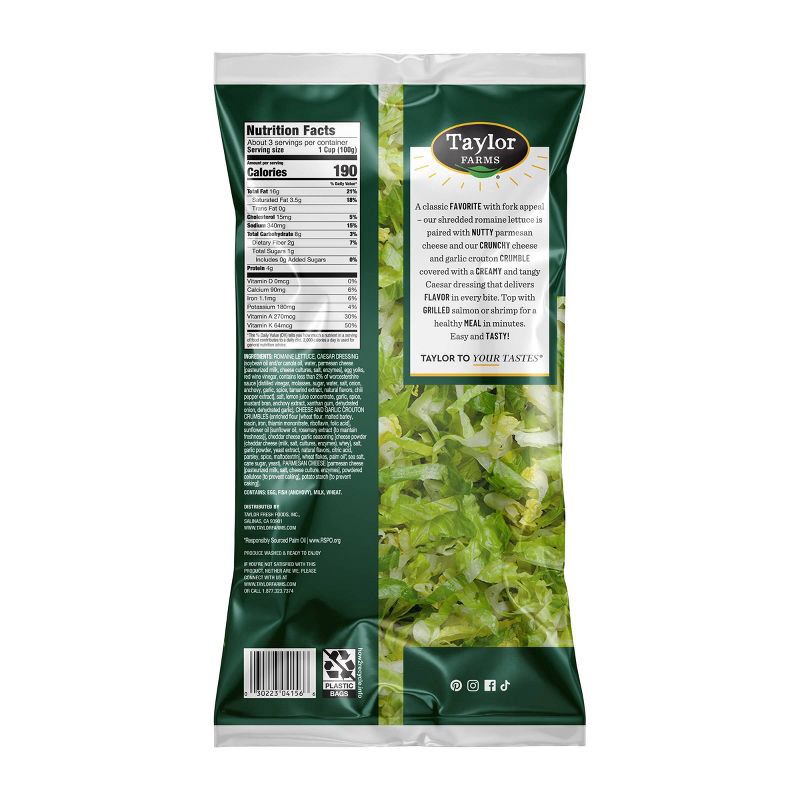 ROMAINE LETTUCE, CHICKEN BREAST MEAT WITH RIB MEAT (chicken breast meat with rib meat, water, less than 2% rice starch, salt, vinegar, sugar), CAESAR DRESSING (soybean oil, water, parmesan cheese [pas…