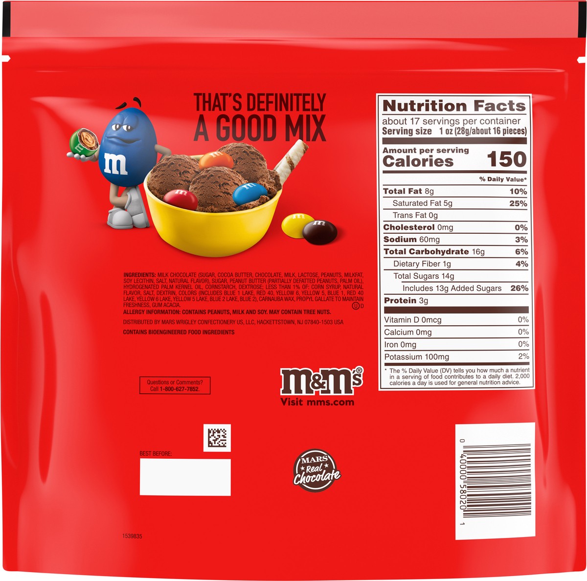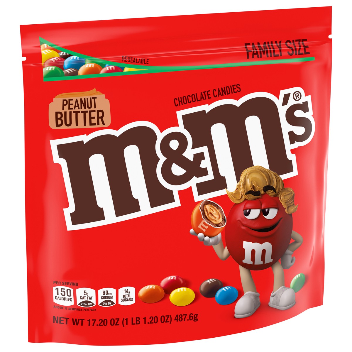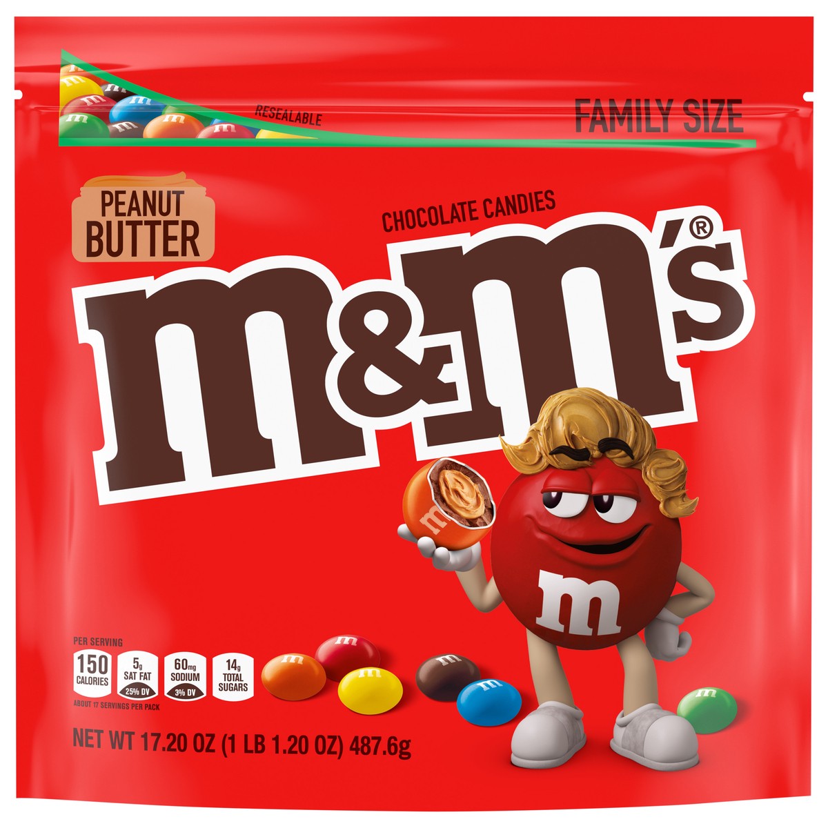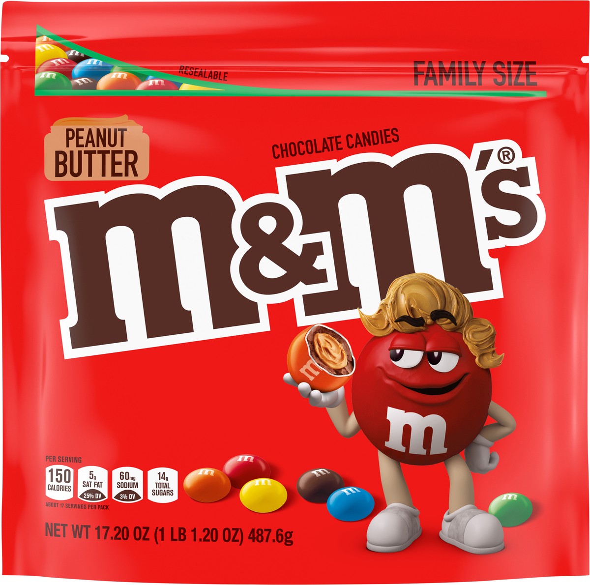 - Contains one (1) 17.2-ounce bag of M&M'S Peanut Butter Chocolate CandyThese popular chocolate candies are made with real peanut butter