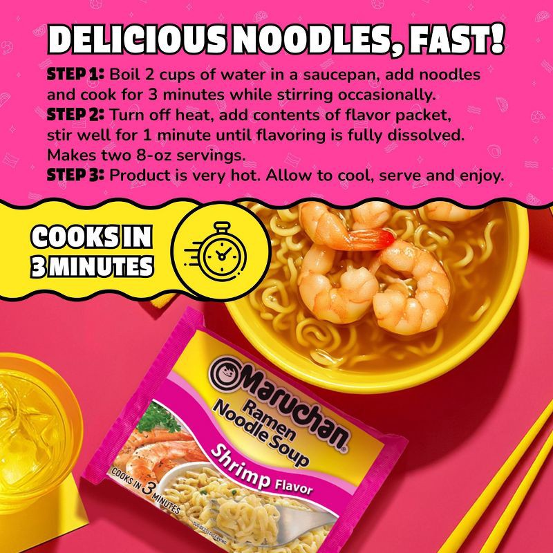 Maruchan Ramen brings you classic noodle soup that's ready in just 3 minutes! Each pack features perfectly tender ramen noodles and savory seasoning. Just boil water, add noodles and seasoning, and en…