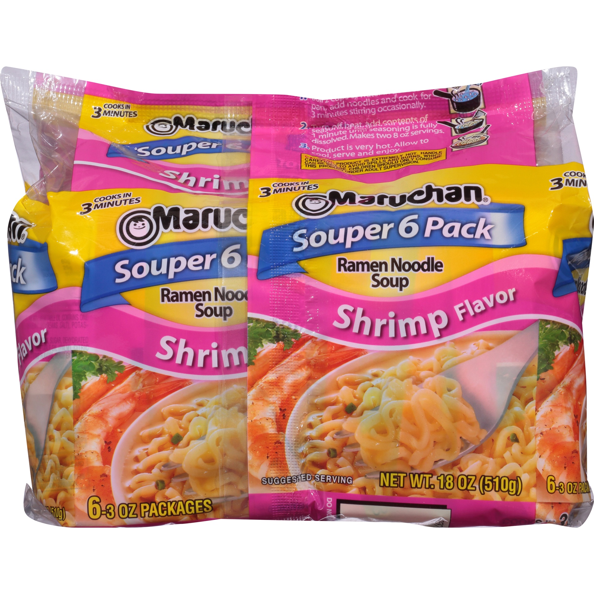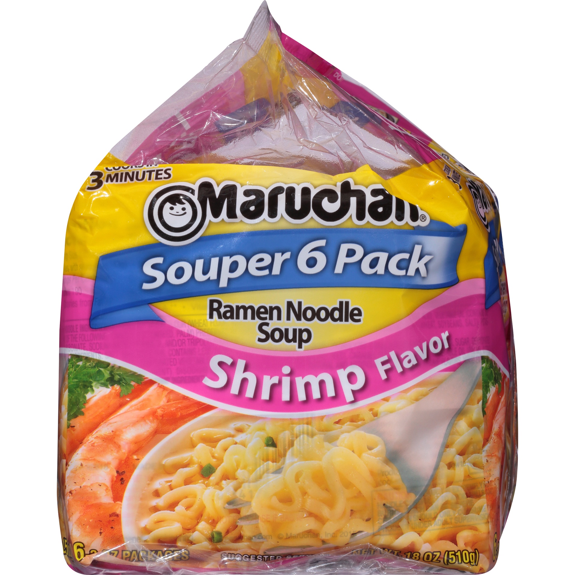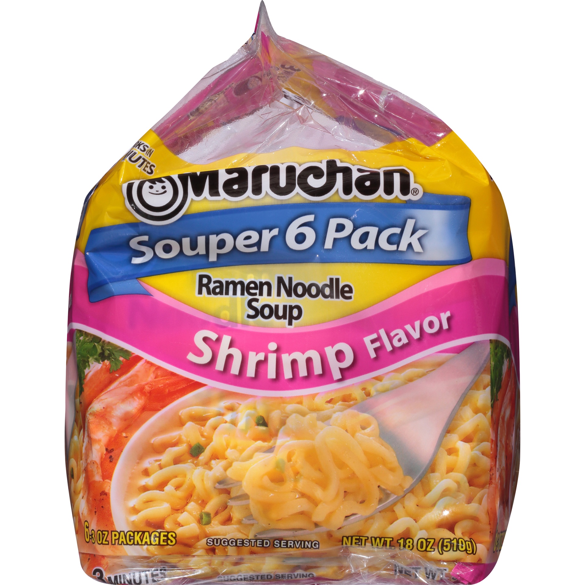 Maruchan Souper 6 Pack Shrimp Flavor Ramen Noodle Soup 6 - 3 oz Packs