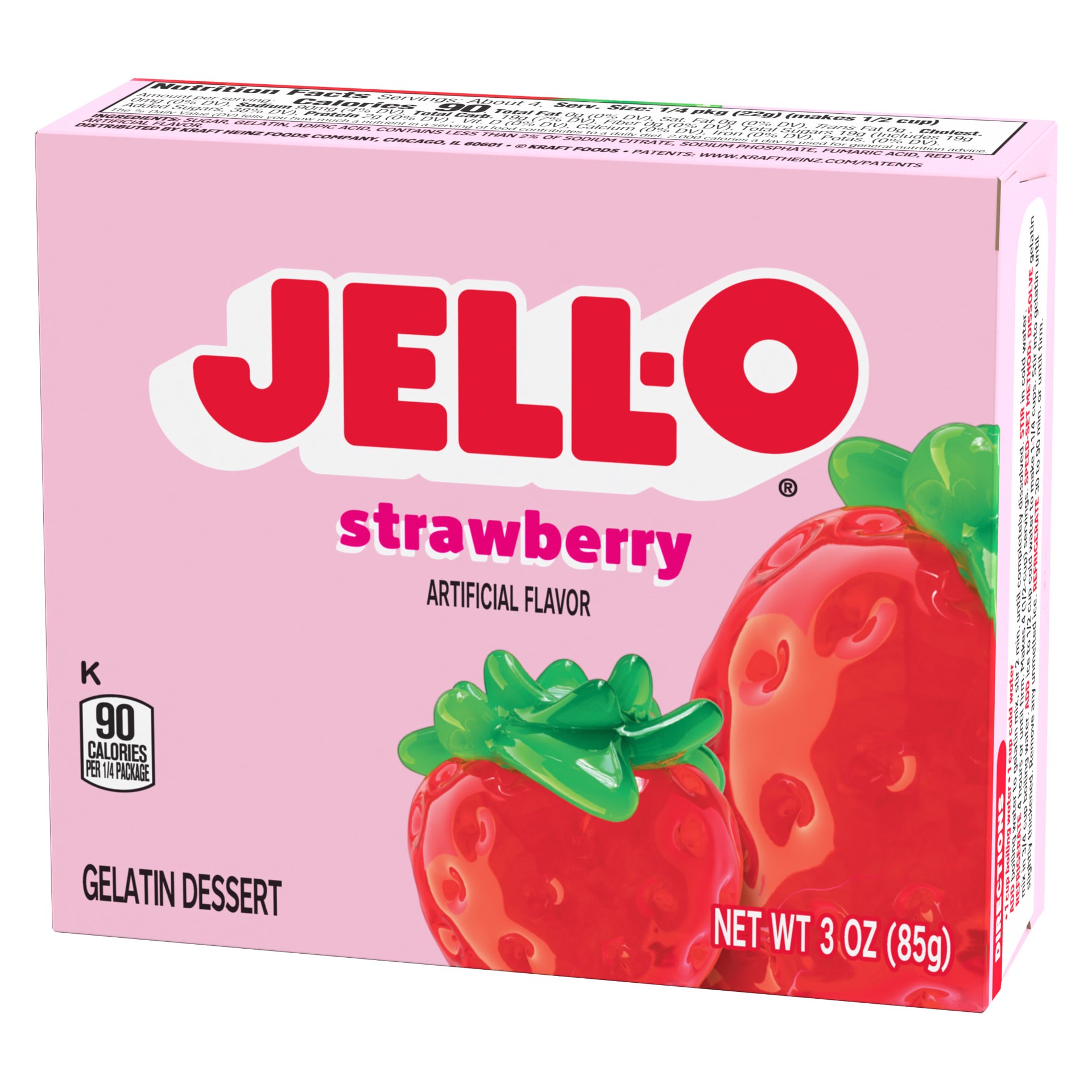 Snack happy. Jell-O Strawberry Artificially Flavored Gelatin Dessert Mix lets you add some wonder to your day with a delicious snack. Spoon up a smile with our artificially flavored strawberry Jell-O …