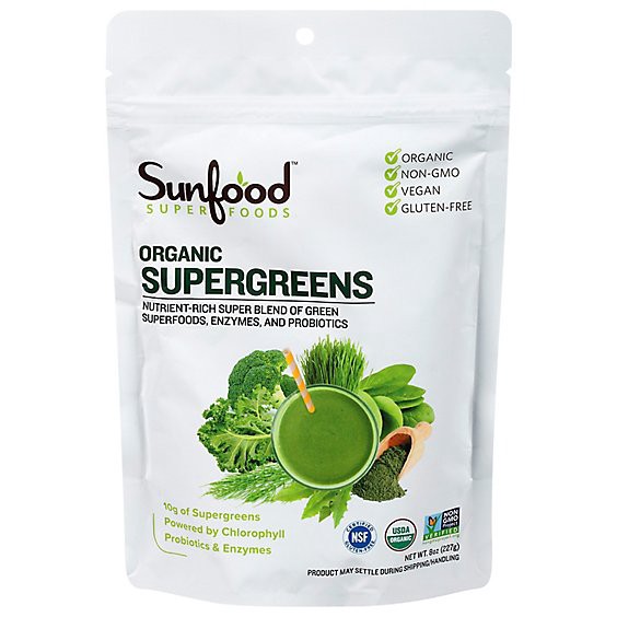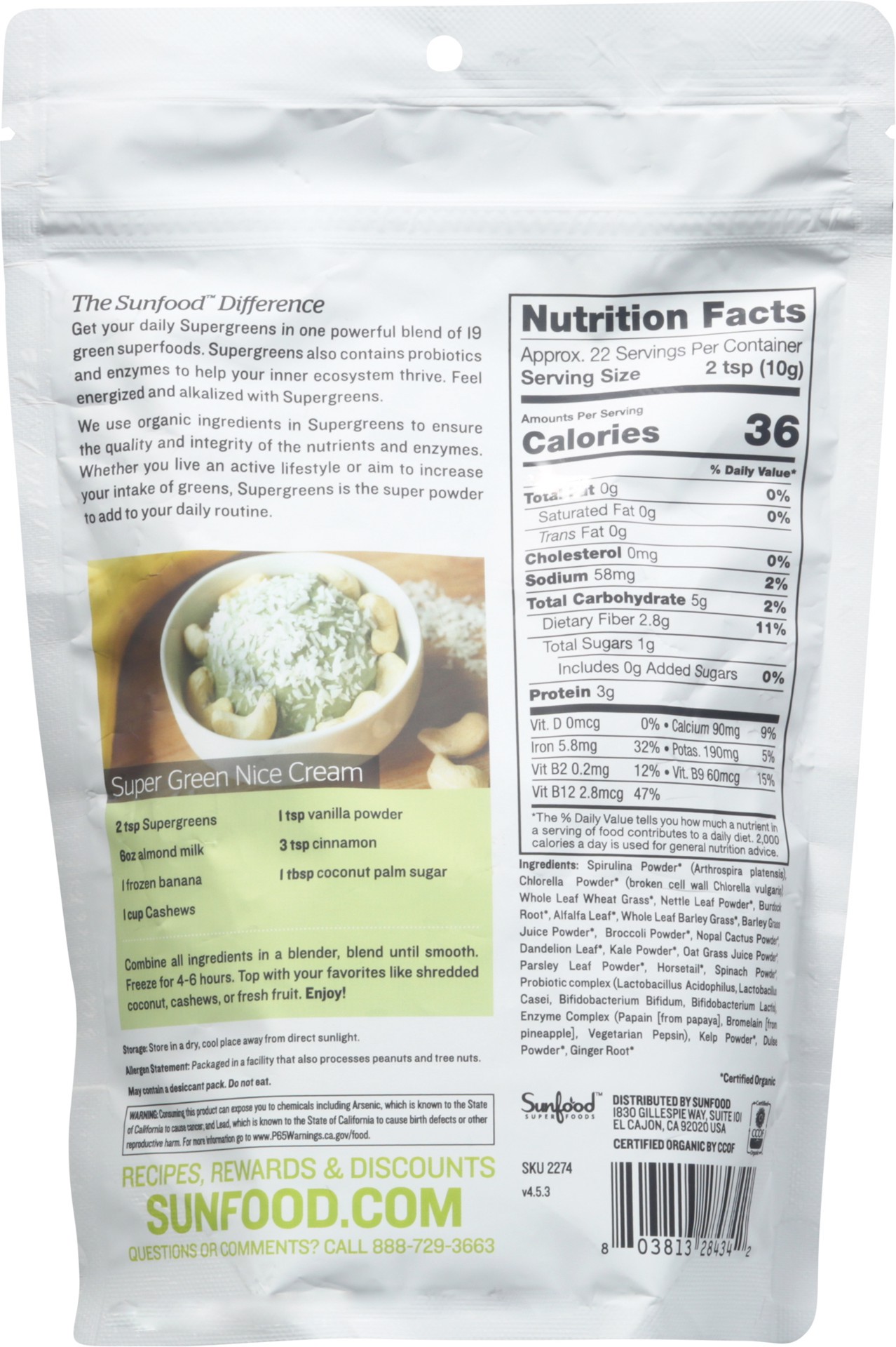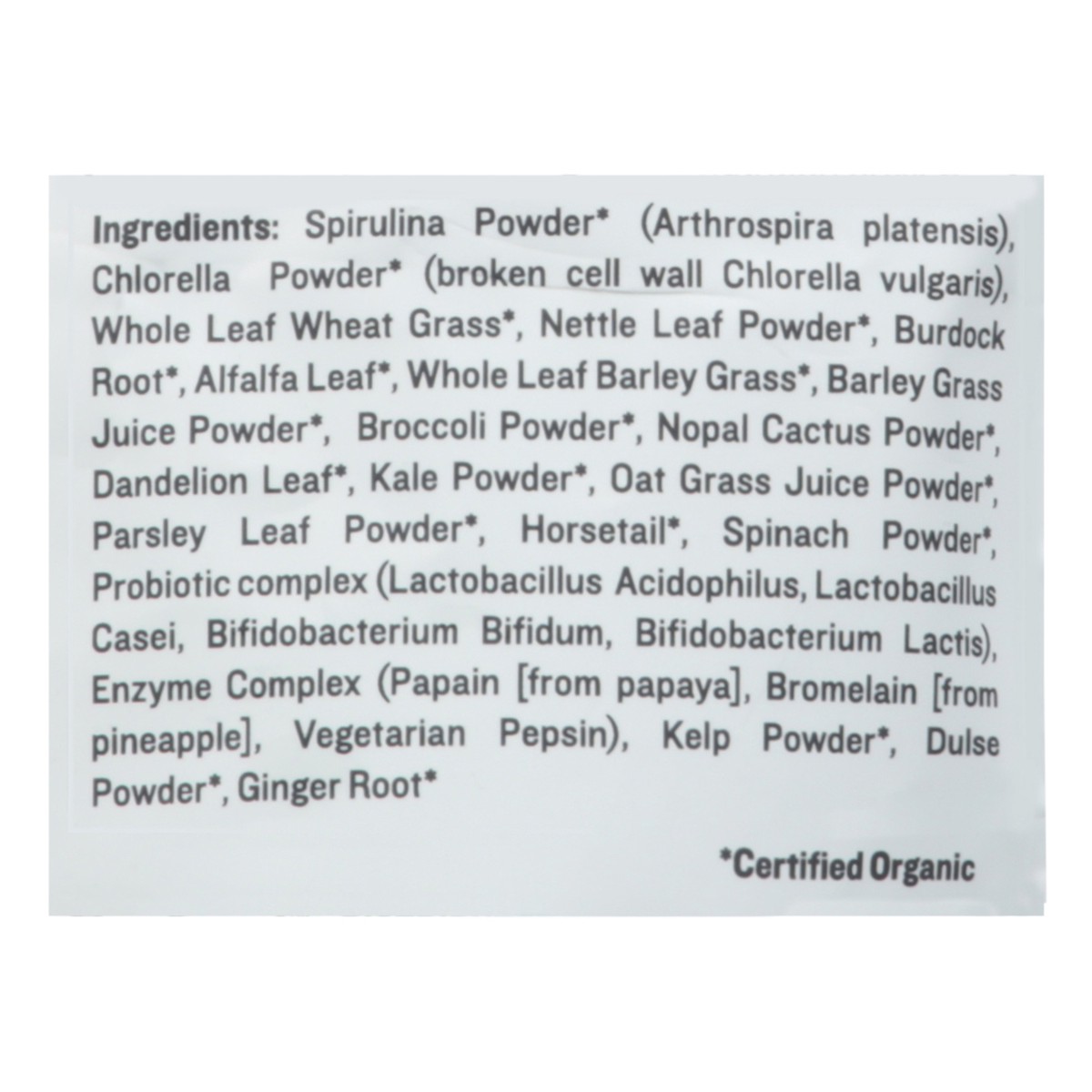 Spirulina Powder (Certified Organic) (Arthrospira Platensis), Chlorella Powder (Certified Organic) (Broken Cell Wall Chlorella Vulgaris), Whole Leaf Wheat Grass (Certified Organic), Nettle Leaf Powder…