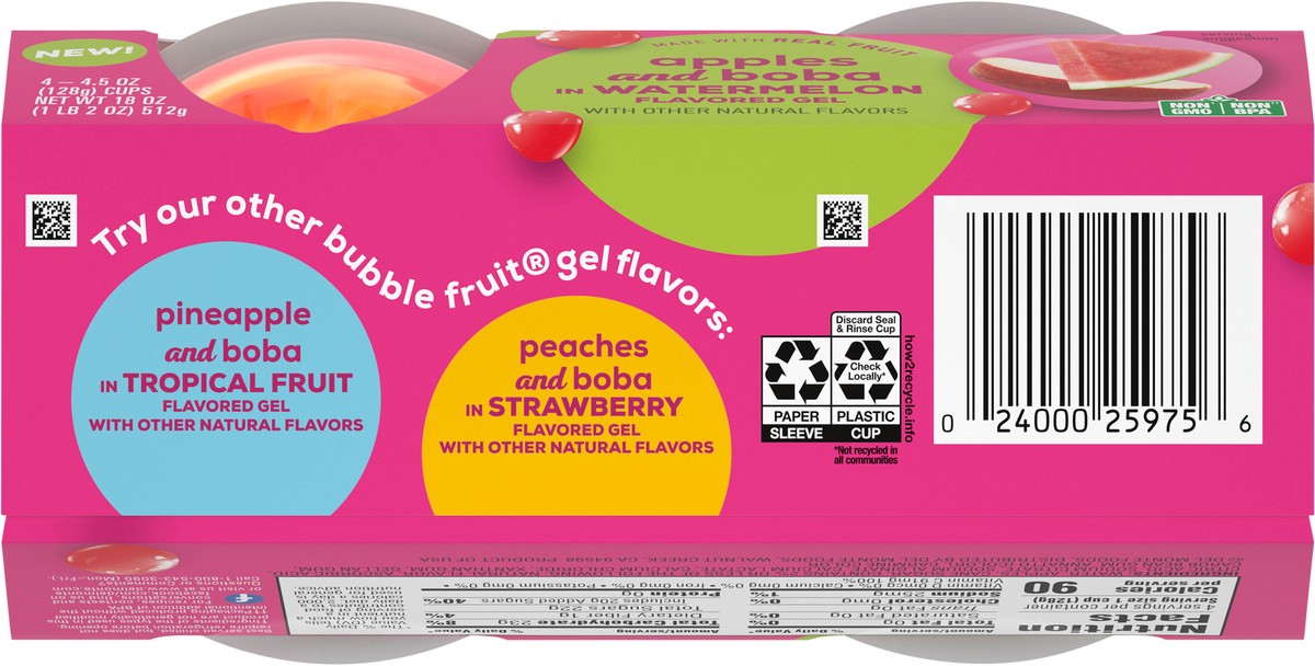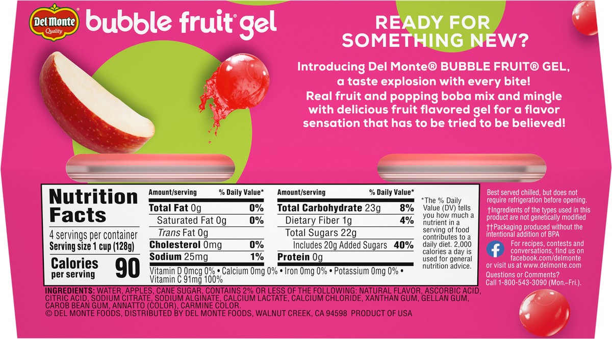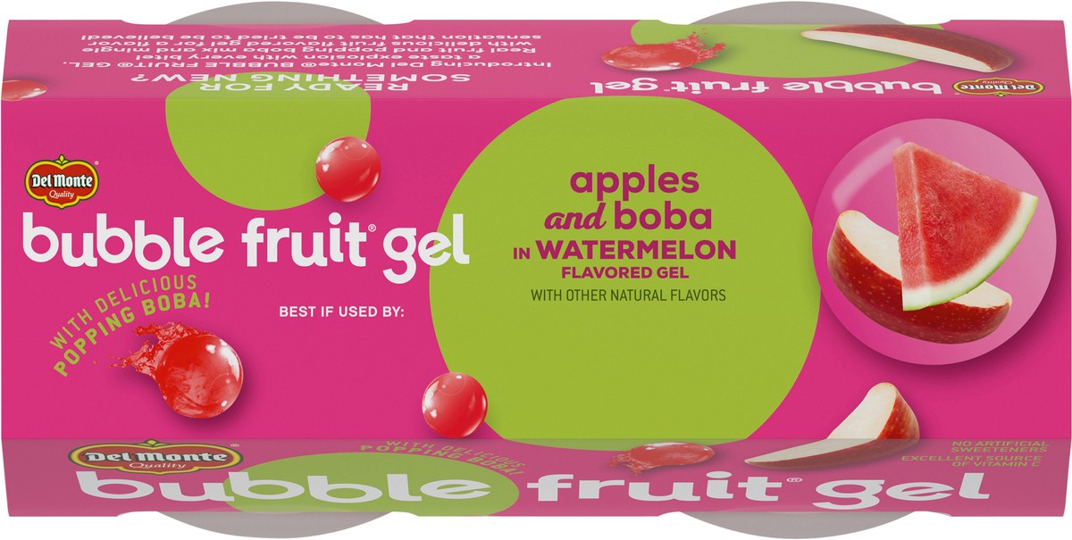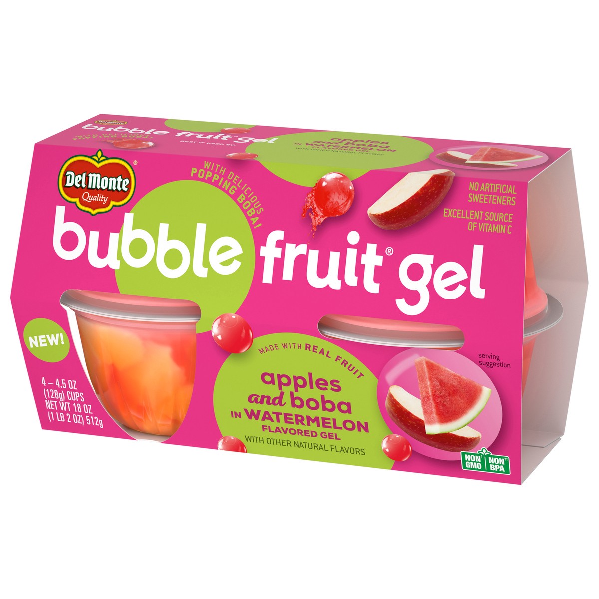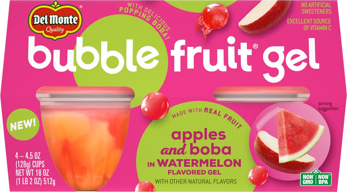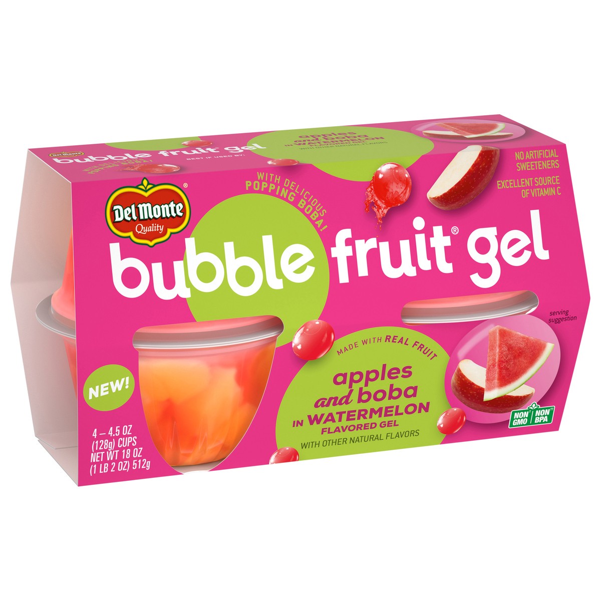 Del Monte Bubble Fruit Apple in Watermelon Gel Fruit Cup Snacks has a taste explosion in every bite! Each Fruit Cup Snack contains real fruit and popping boba with delicious fruit flavored gel for a f…