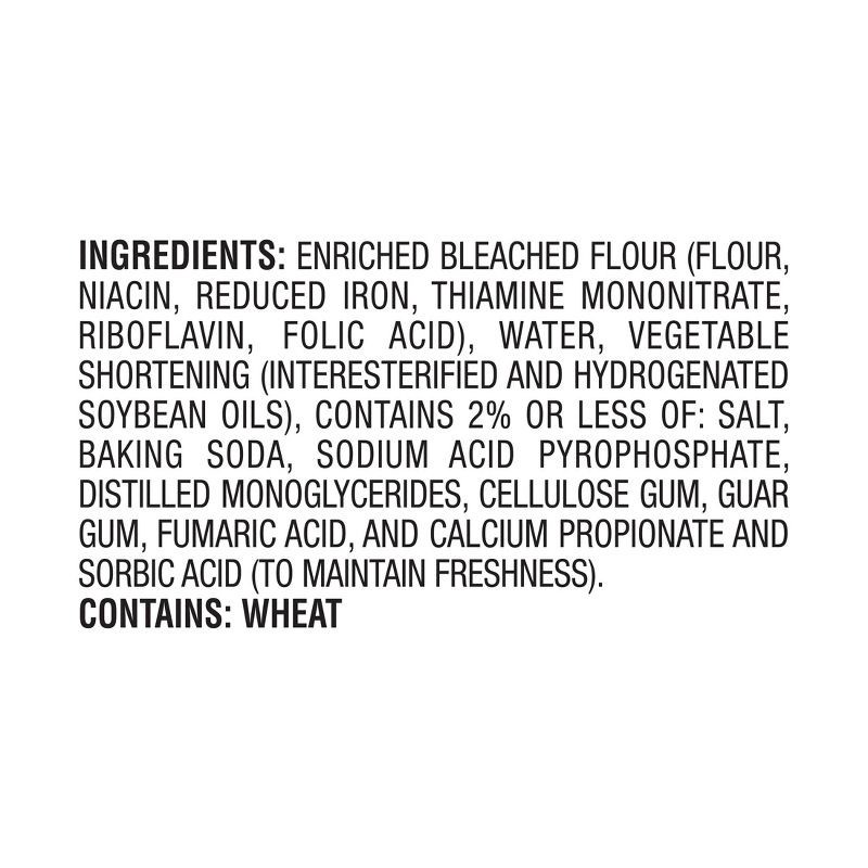 Enriched Bleached Flour (Flour, Niacin, Reduced Iron, Thiamine Mononitrate, Riboflavin, Folic Acid), Water, Vegetable Shortening (Interesterified and Hydrogenated Soybean Oils), Contains 2% or Less of…