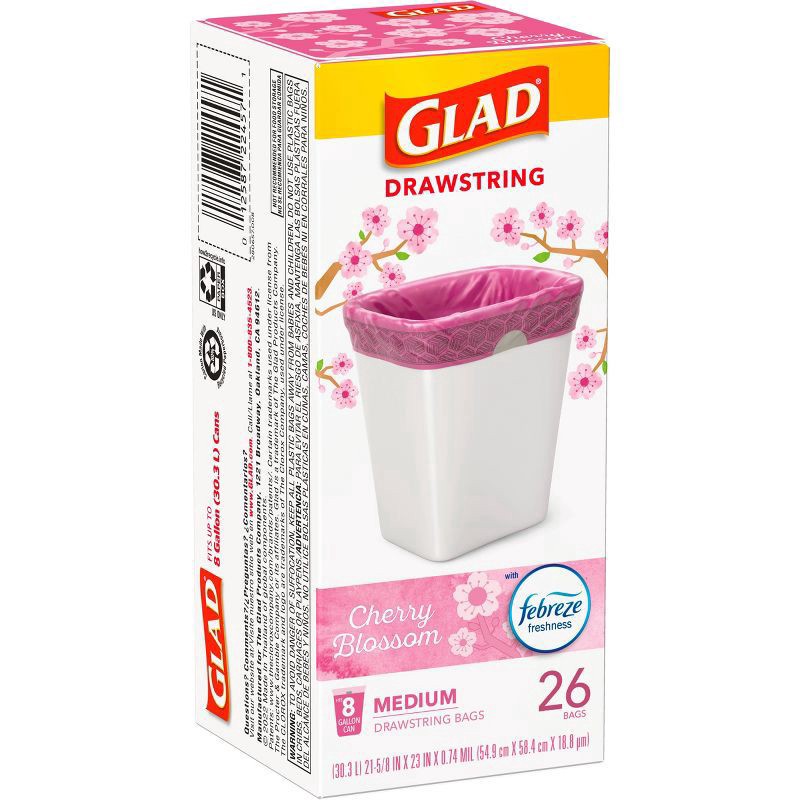 Glad Drawstring Cherry Blossom with Febreze Freshness Bags Medium 26 ea