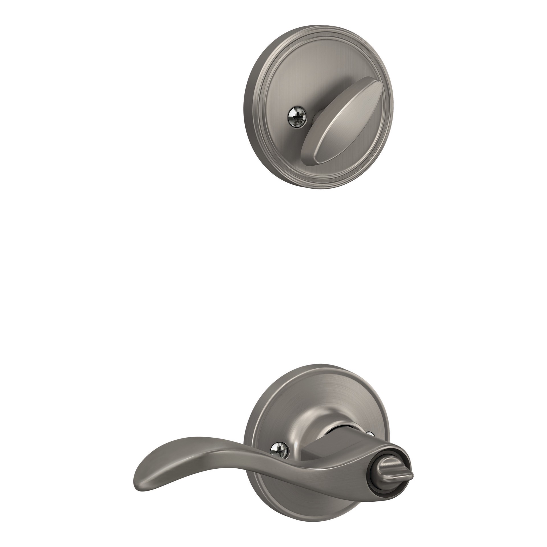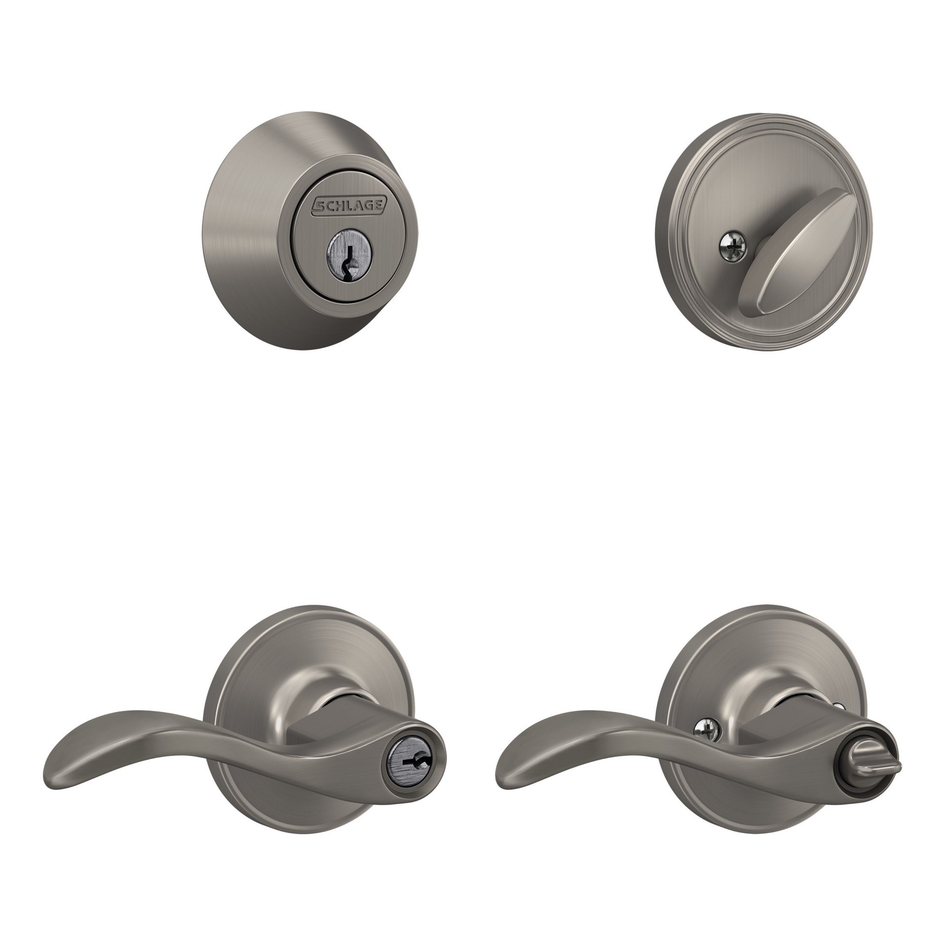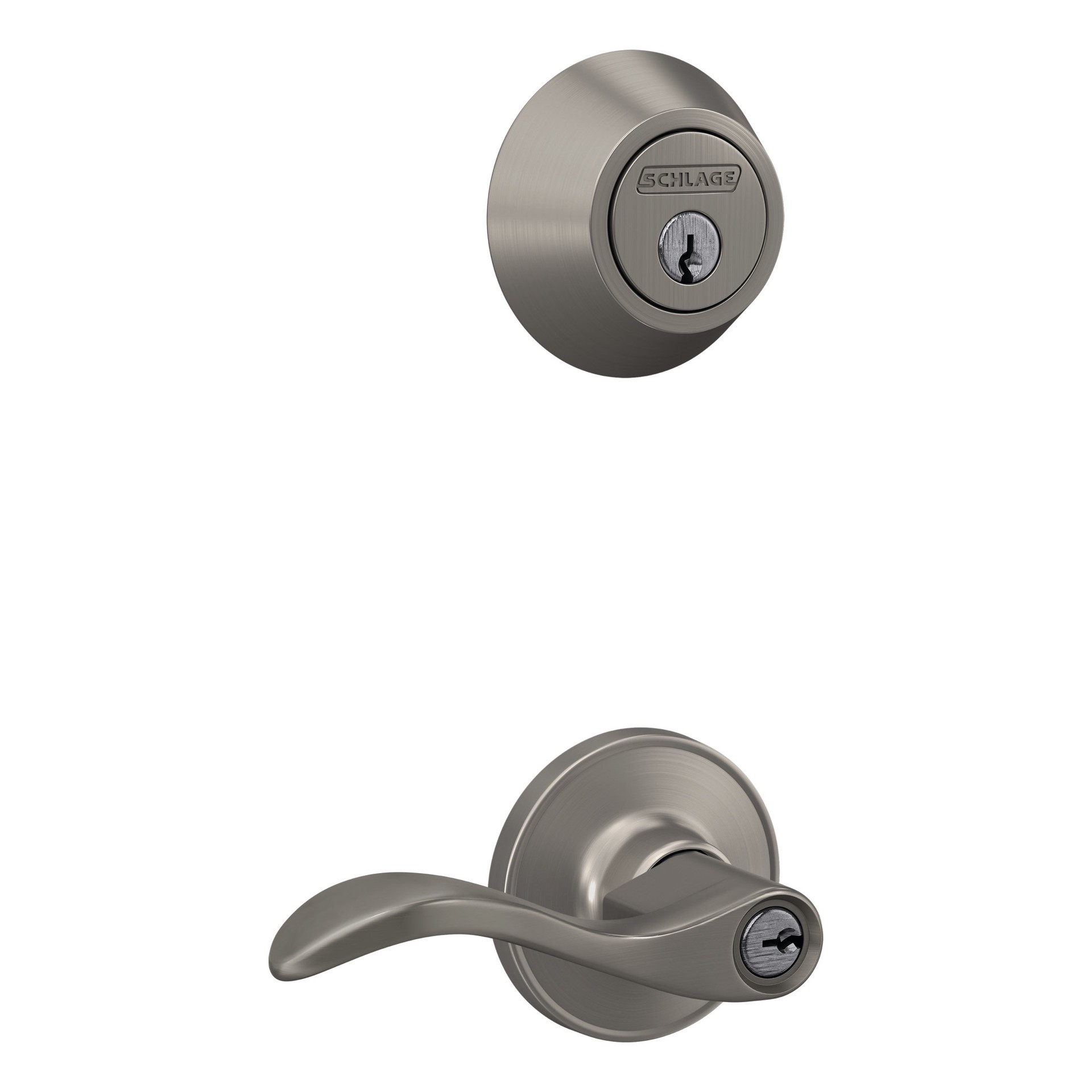 Home Front by Schlage Kenley Satin Nickel Exterior Single-Cylinder Deadbolt and Keyed Entry Door Handle Combo Pack