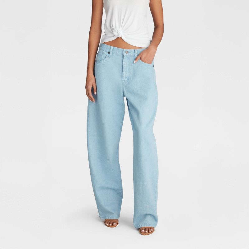 KBB by KAHLANA Women's Mid-Rise Barrel Leg 'The Kahlana Jean' - Light Blue Denim 0