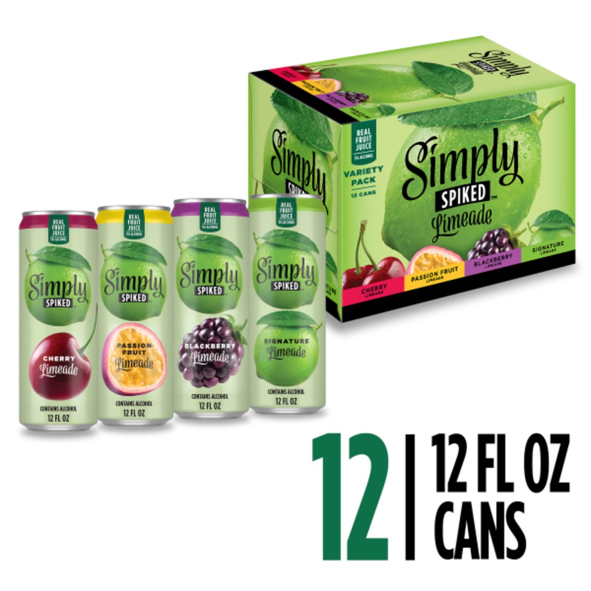 - You'll get twelve 12 fl oz Cans of Simply Spiked Limeade Variety Pack