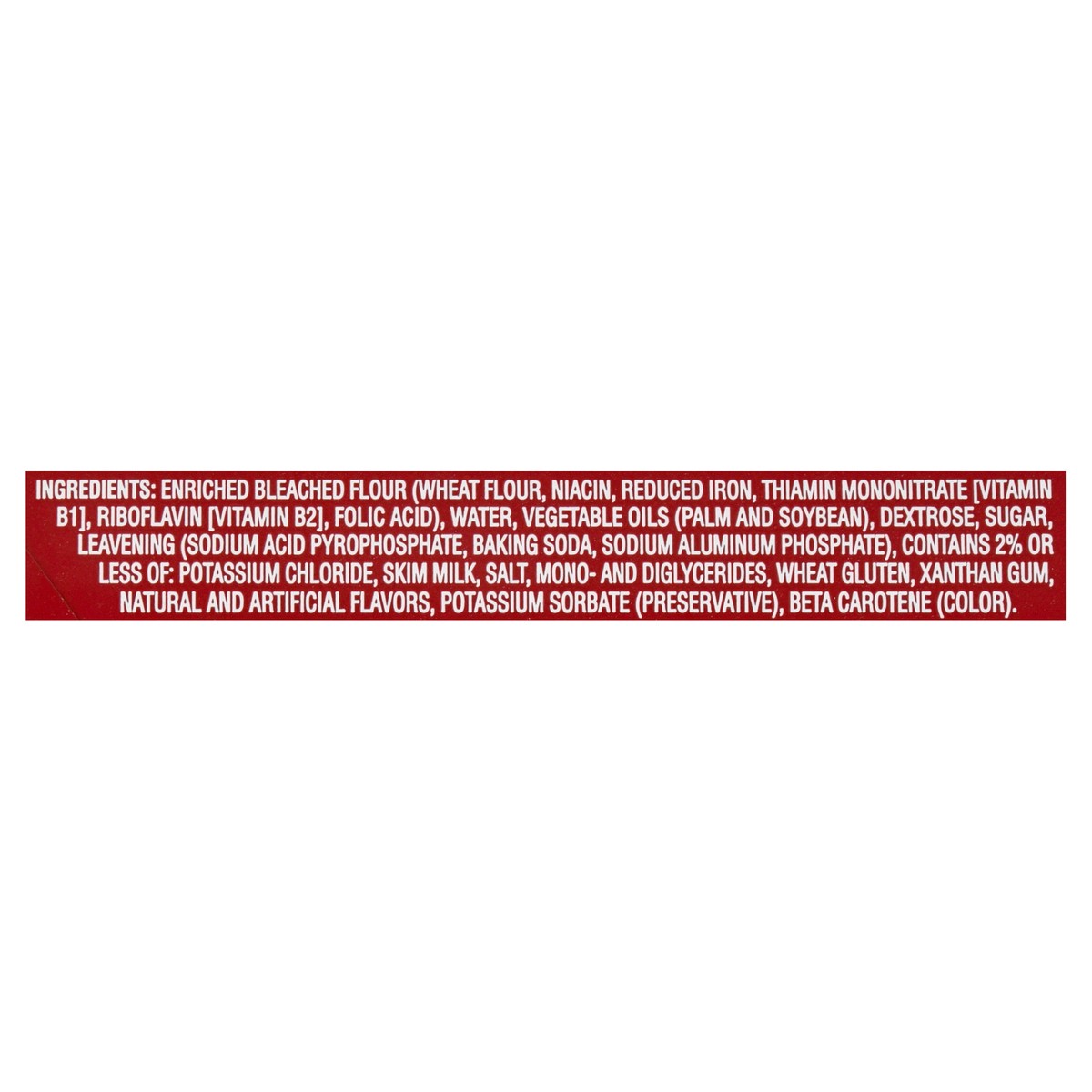 Enriched Bleached Flour (Wheat Flour, Niacin, Reduced Iron, Thiamine Mononitrate [Vitamin B1], Riboflavin [Vitamin B2], Folic Acid), Water, Vegetable Oils (Palm and Soybean), Buttermilk, Dextrose, Sug…