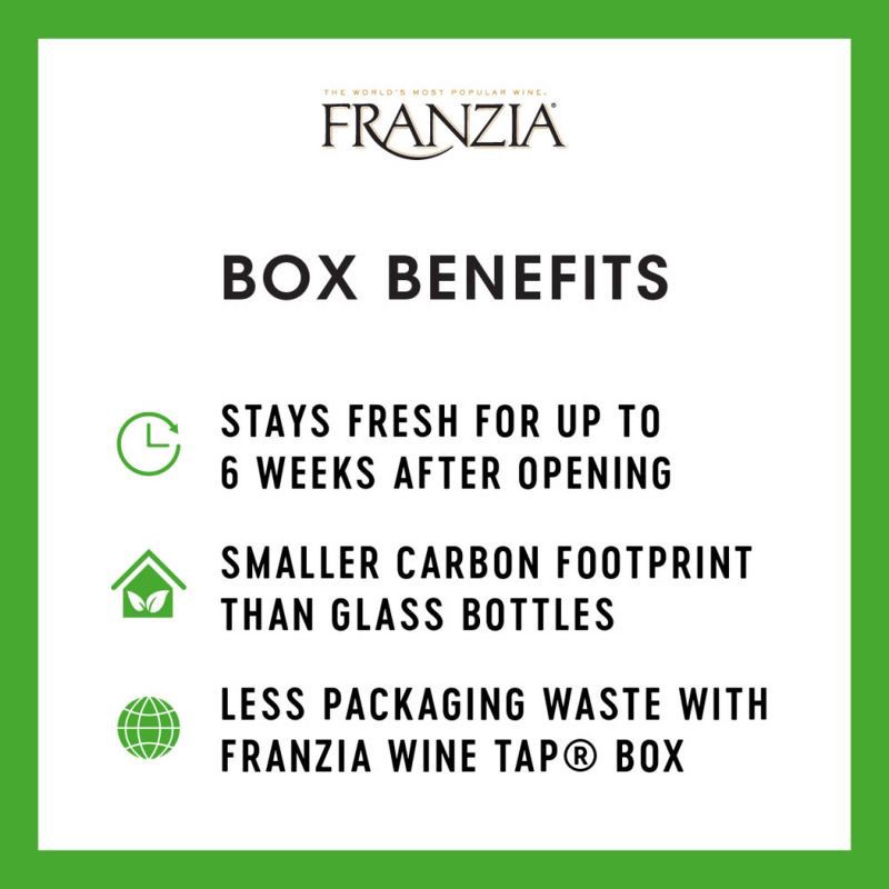 - One 3L box of Franzia Crisp White equals four standard wine bottles and serves 20 5oz wine glasses