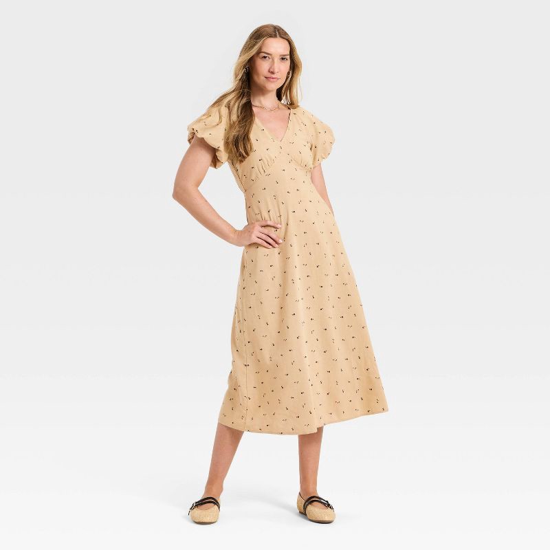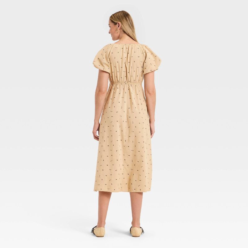 Women's Puff Short Sleeve Midi Sundress - Universal Thread™ Tan Floral XL