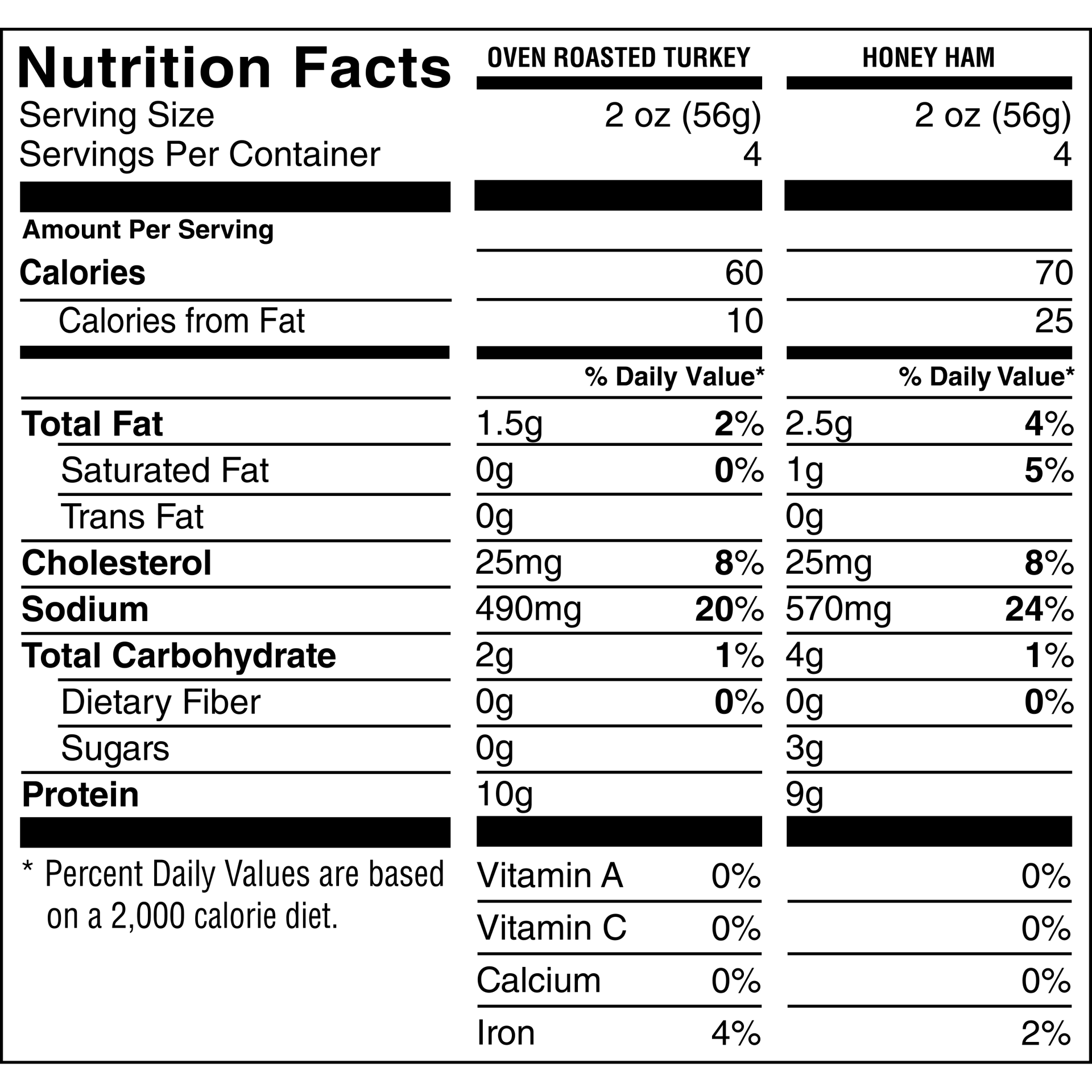 Enjoy two of your favorites with Hillshire Farm Ultra Thin Oven Roasted Turkey Breast & Honey Ham Sliced Deli Meat. Perfect for sandwiches and wraps, our oven roasted turkey is paired with sliced hone…