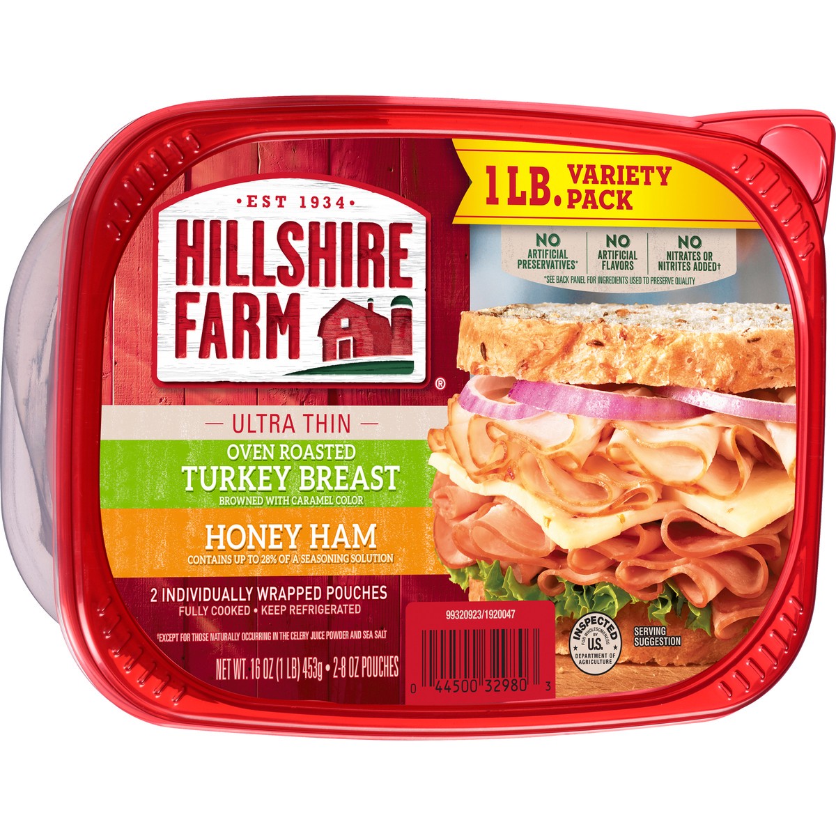 Hillshire Farm Ultra Thin Sliced Lunchmeat Oven Roasted Turkey Breast & Honey Ham - 16 Oz