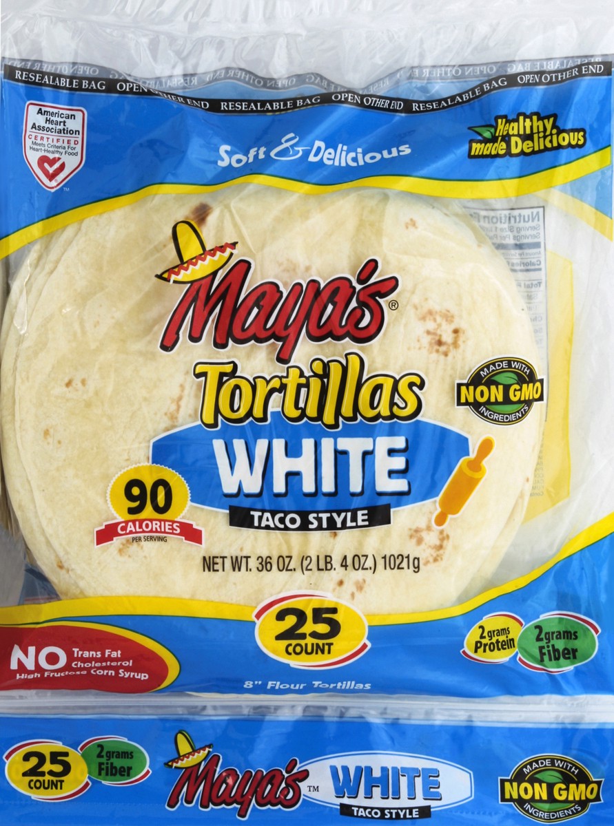 Maya's Taco Style White 8 Inch Flour Tortillas, 25 ct