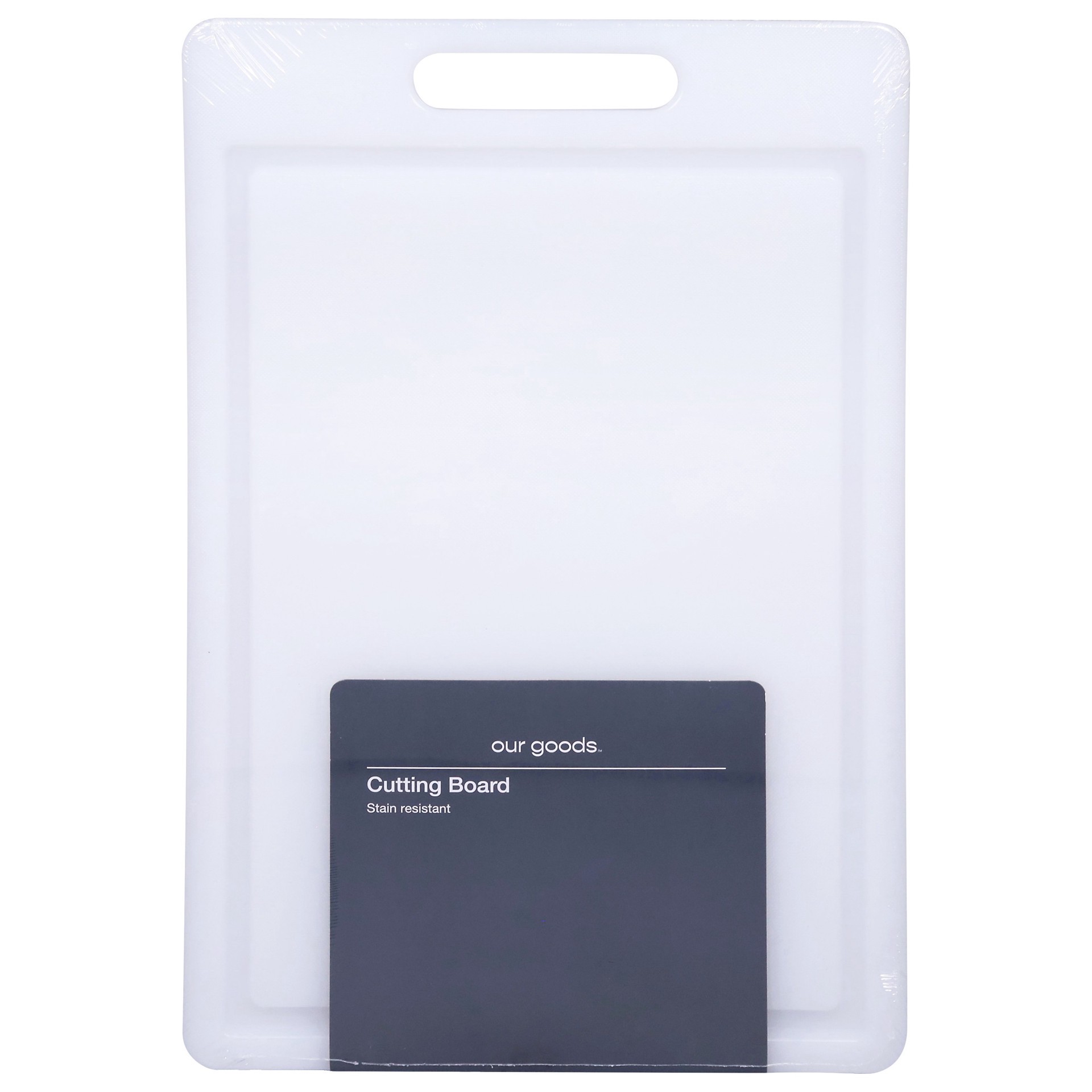 Stop messy spills with this our goods cutting board and its built-in juice well that catches drips and keeps your countertops clean. At 10 inches by 15.5 inches, it's the perfect size for everyday cho…