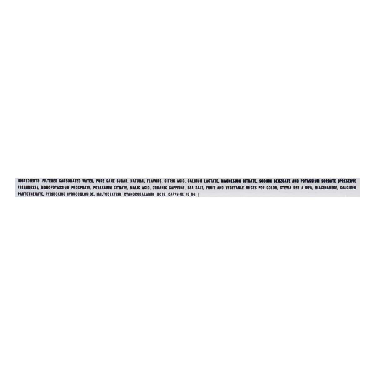 Filtered Carbonated Water, Pure Cane Sugar, Natural Flavors, Citric Acid, Calcium Lactate, Magnesium Citrate, Sodium Benzoate and Potassium Sorbate (Preserve Freshness), Monopotassium Phosphate, Potas…