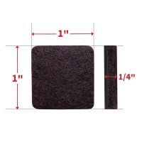Super Sliders 1" Square Heavy-Duty Felt Furniture Pads for Hardwood, Brown