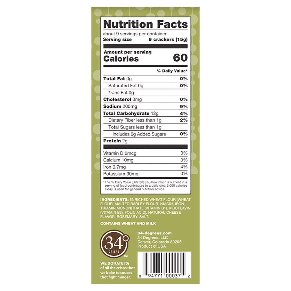 With just the right amount of flavor to bring out the best in whatever you pair them with, 34 Degrees Rosemary Crisps wont overwhelm your palate. Try with anything from creamy cheeses to cured meats,…