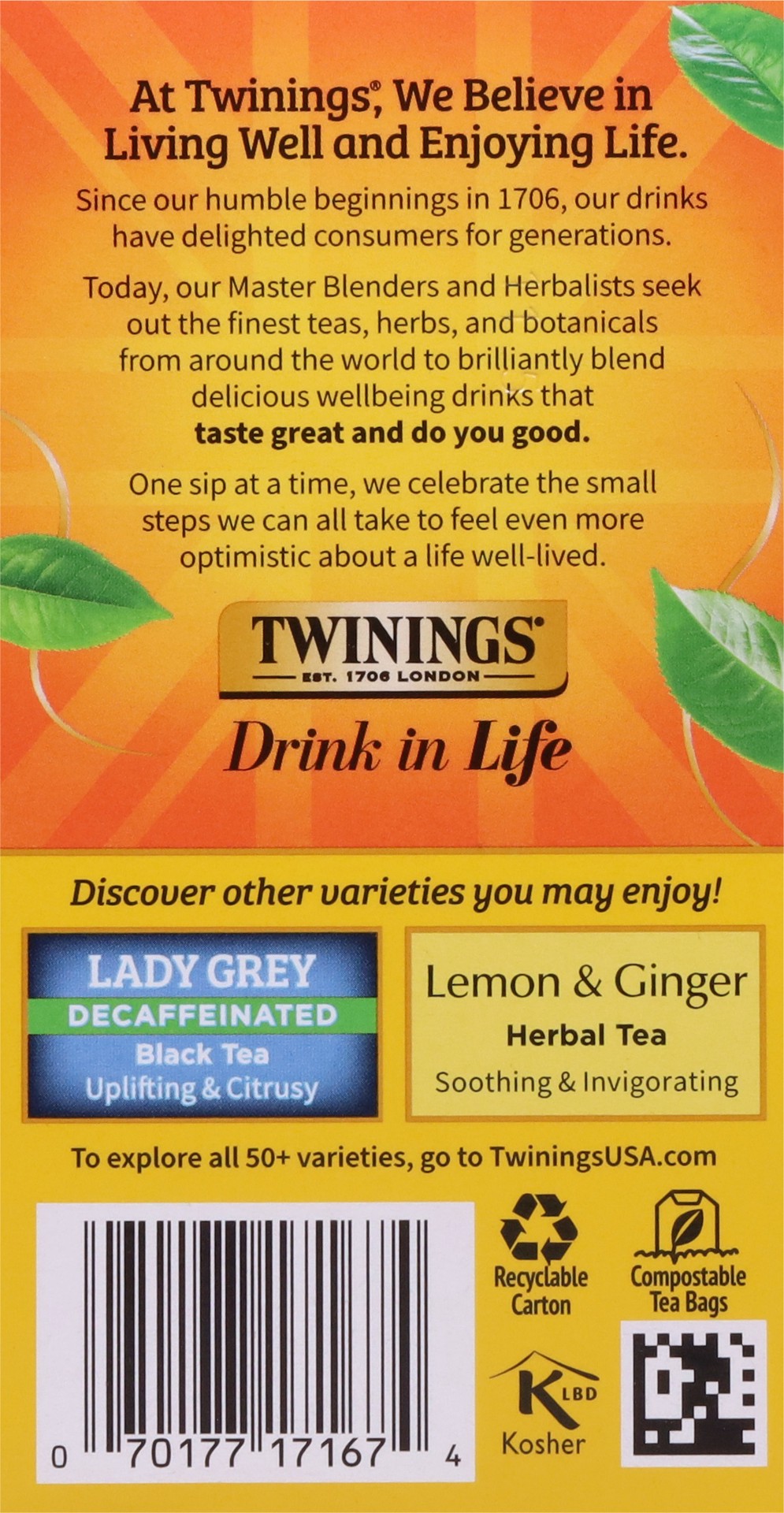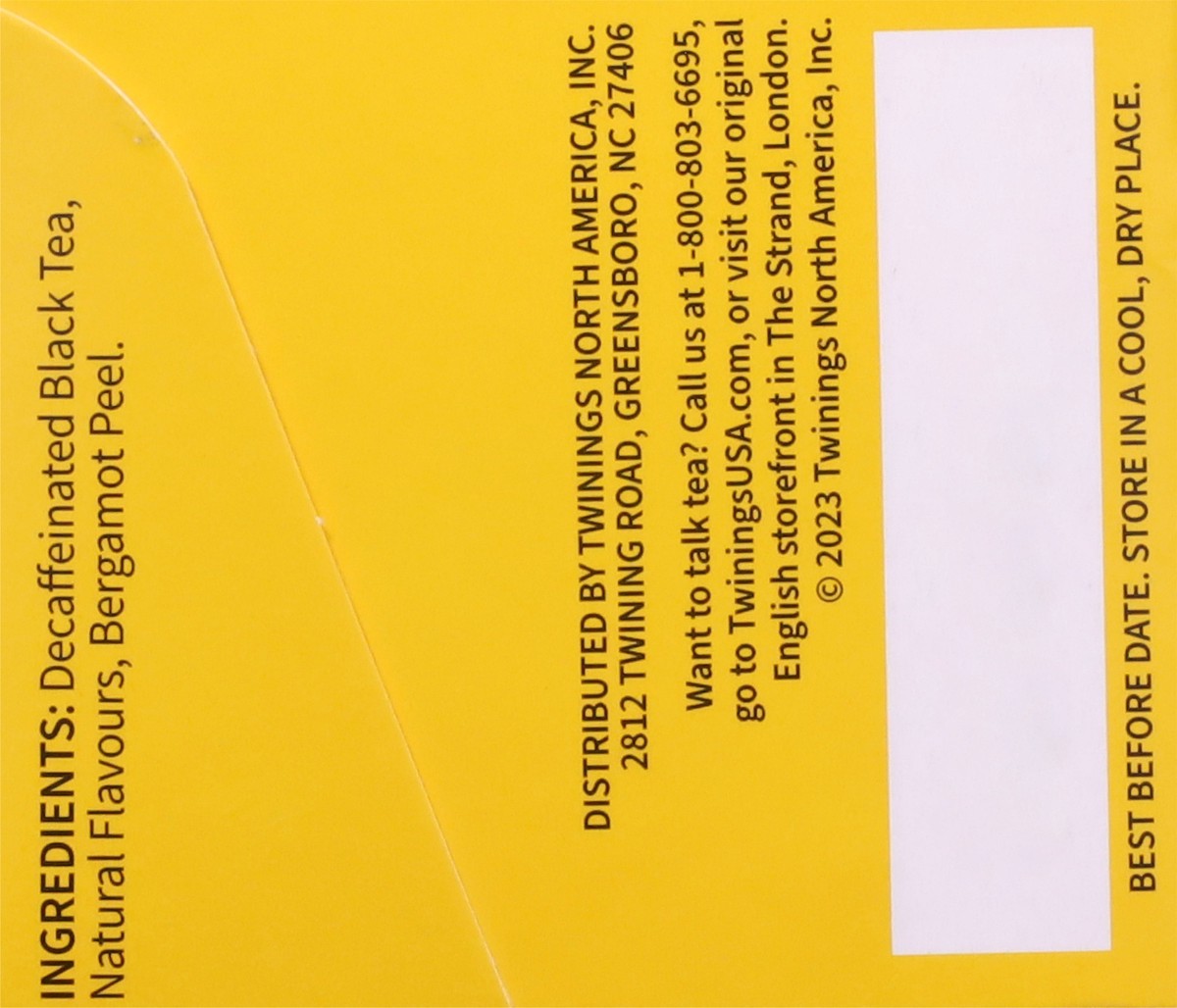 Decaffeinated Black Tea, Natural Flavours, Bergamot Peel.
