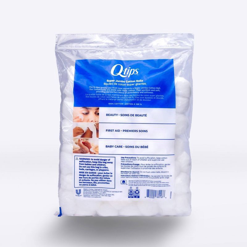 The Q-tips quality you can trust now comes in Super Jumbo Cotton Balls. Made with 100% super soft cotton, each extra large cotton ball is incredibly gentle on skin. They are thick and fluffy making th…