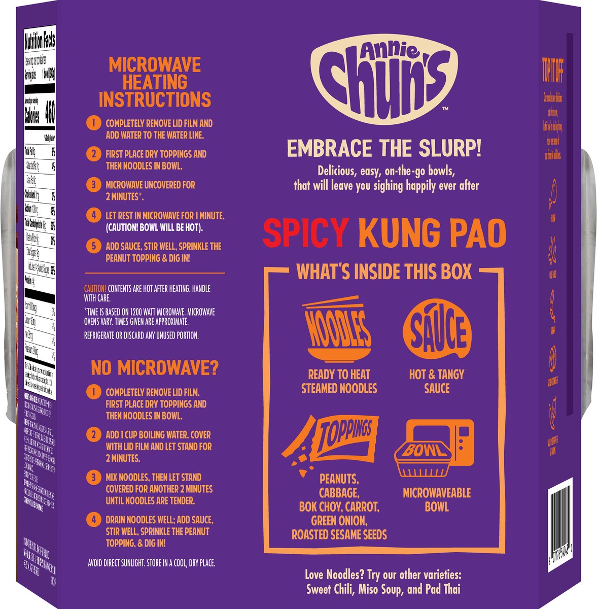 Slurp, slurp, hooray! Introducing Annie Chun's Spicy Kung Pao Noodle Bowl. We're talking a hot and tangy sauce with Hokkien noodles, crushed peanuts, cabbage, bok choy, carrots, green onion, and roast…