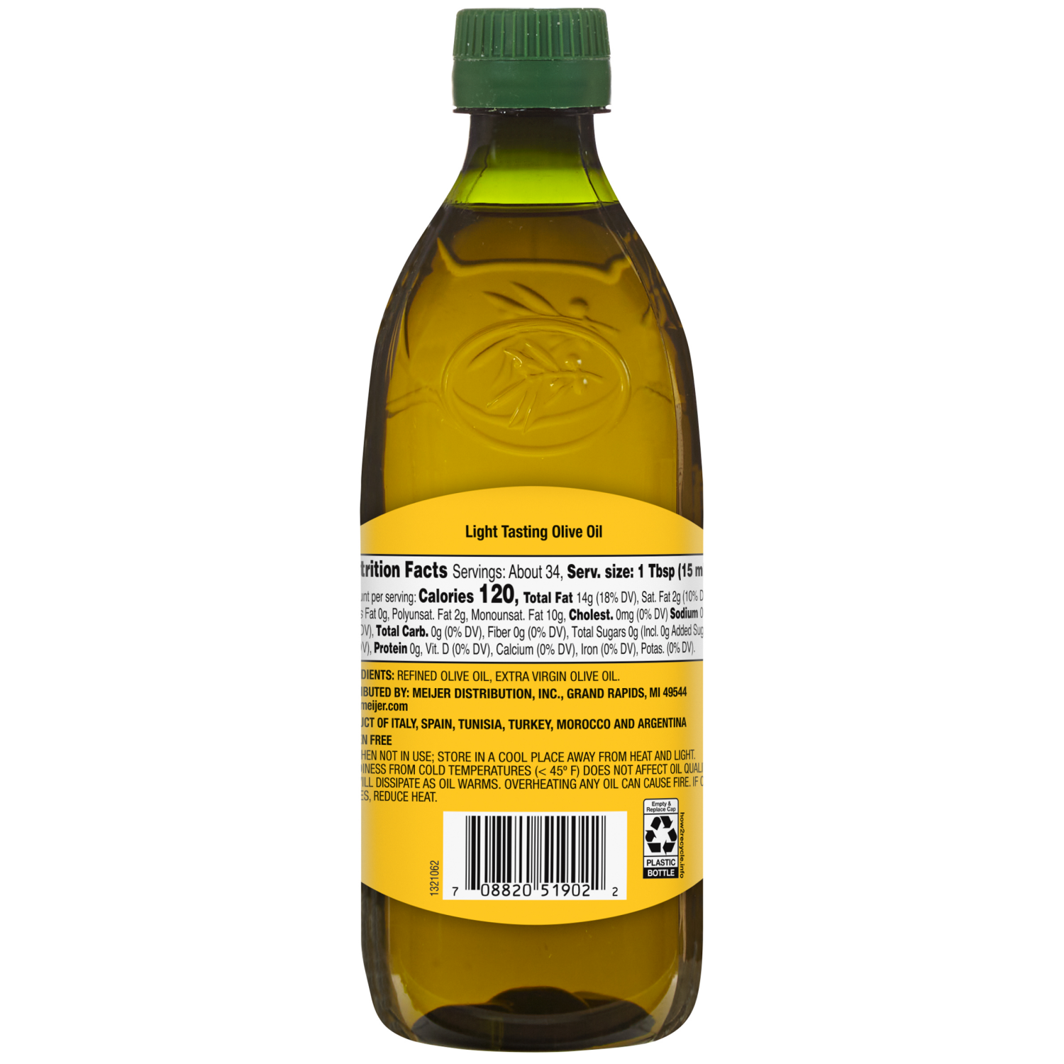 As versatile as it is delicious, Meijer Light Tasting Olive Oil will quickly become a staple in your home. Its light flavor is perfect for frying and baking.