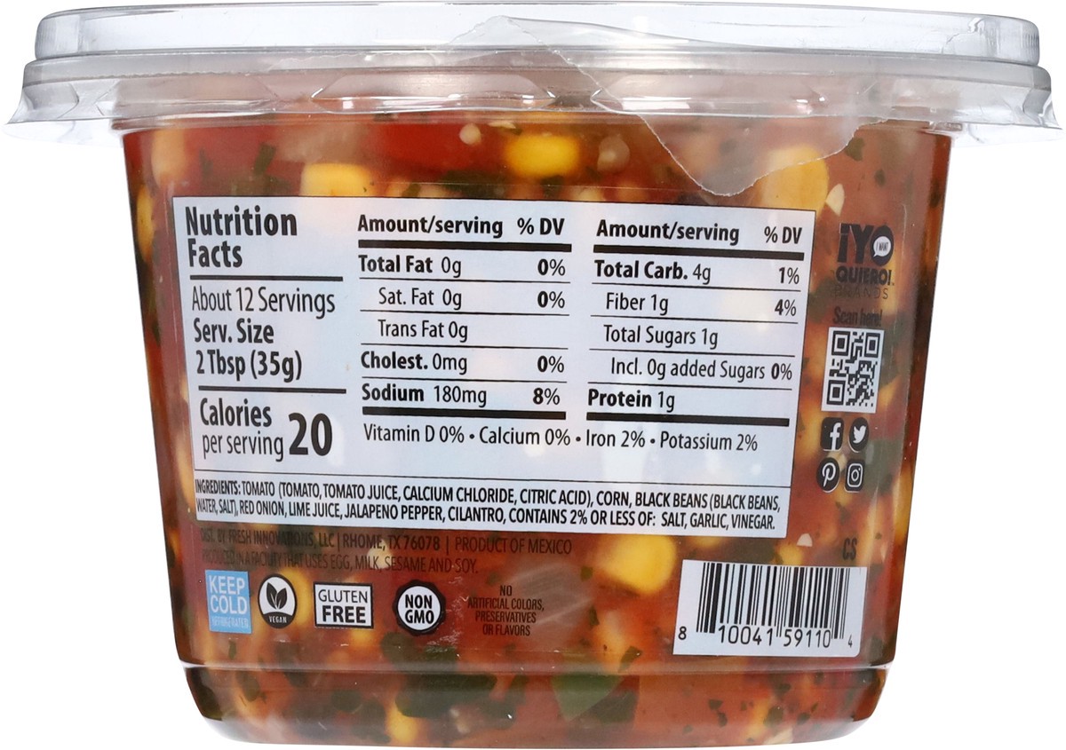 Tomato, corn, black beans, jalapeno, spices. No artificial colors, preservatives or flavors. Gluten free. Vegan. Non GMO. I want Quiero! Mild. New! Scan! Facebook. Twitter. Pinterest. Instagram. Produ…