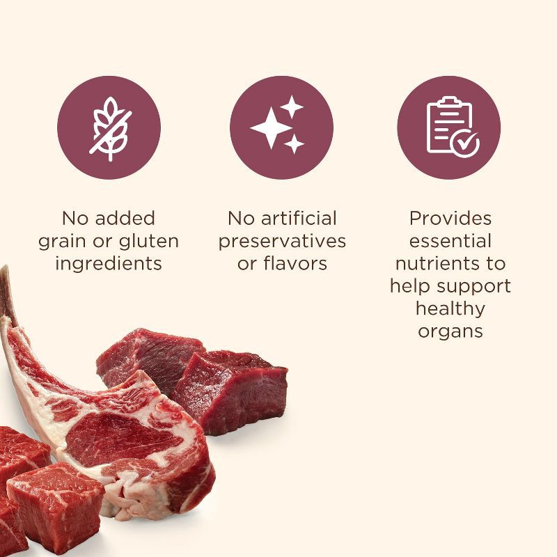 - Contains one (1) 23 lb. bag of premium high protein dry dog food with beef, potatoes, peas, venison and lamb