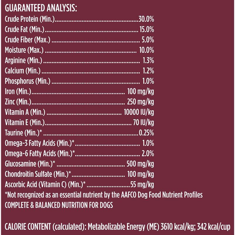 - High protein dog food providing 30% high-quality protein, made with real beef as the #1 ingredient to help support lean muscle mass