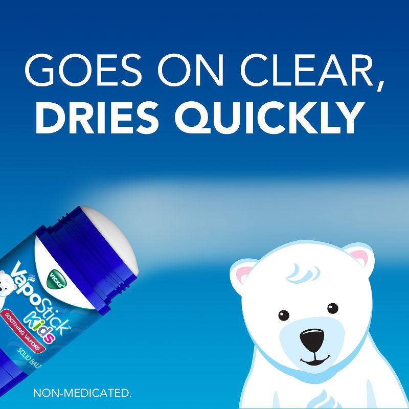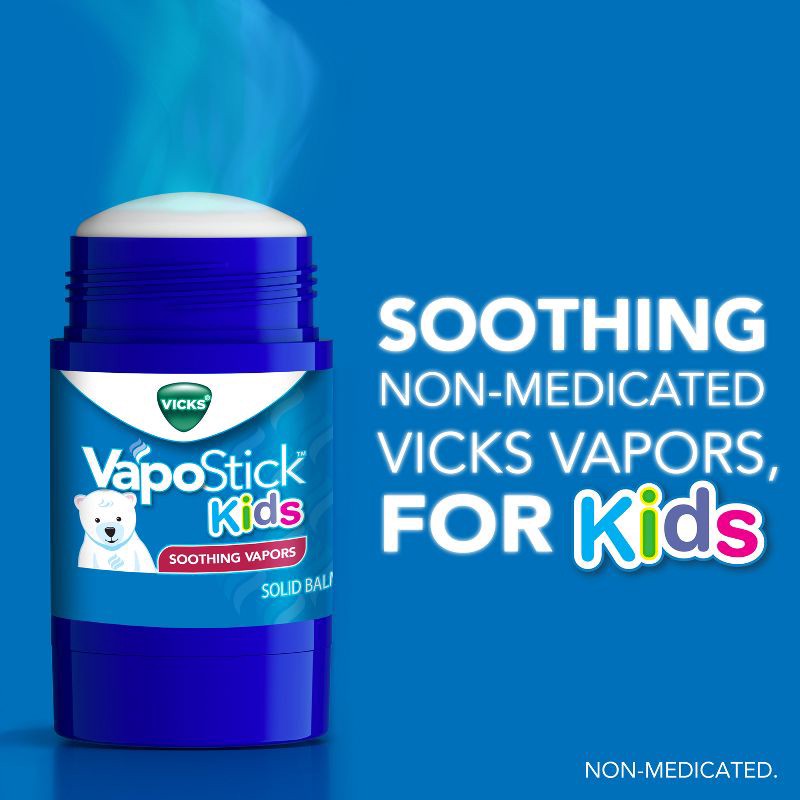 Vicks VapoStick Kids, is a no mess, solid balm, with soothing non-medicated Vicks Vapors. Vicks VapoStick is an easy-to-use solid stick that goes on clear and dries quickly so your child can remain co…
