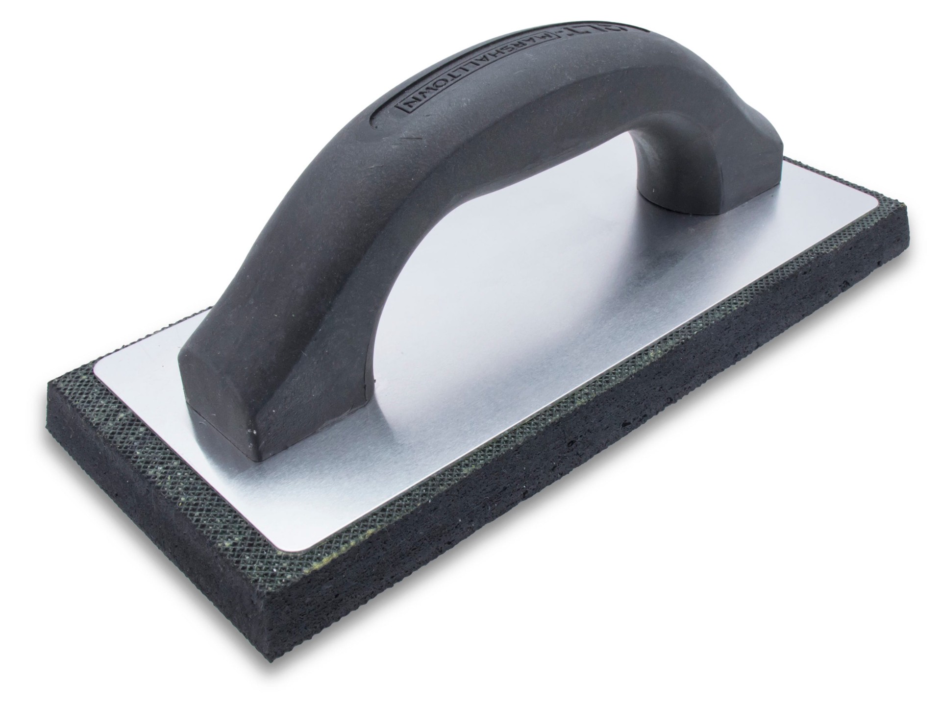 Ideal float for bringing sand to the surface. Size 9" x 4". Molded black rubber pad is compact and dense. Used by concrete finishers and plasterers. Comfortable smooth handle.