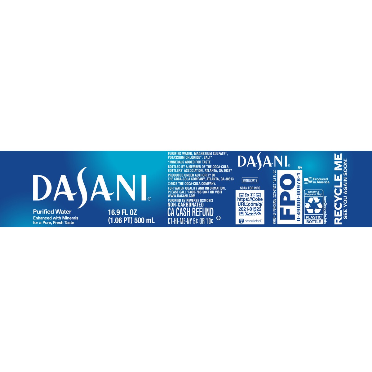 Dasani Water Purified Enhanced With Minerals Bottled 6 Count - 16.9 Fl. Oz.