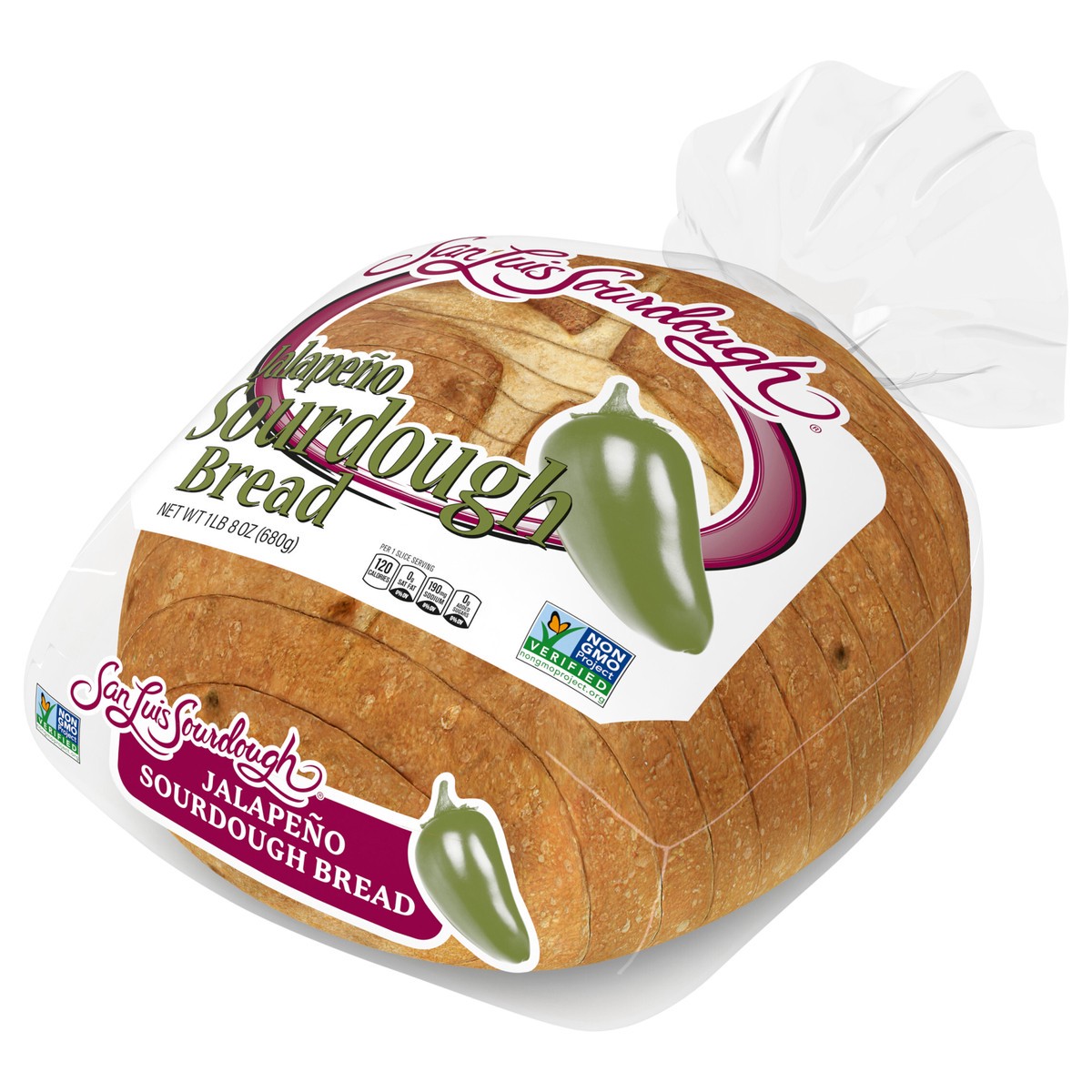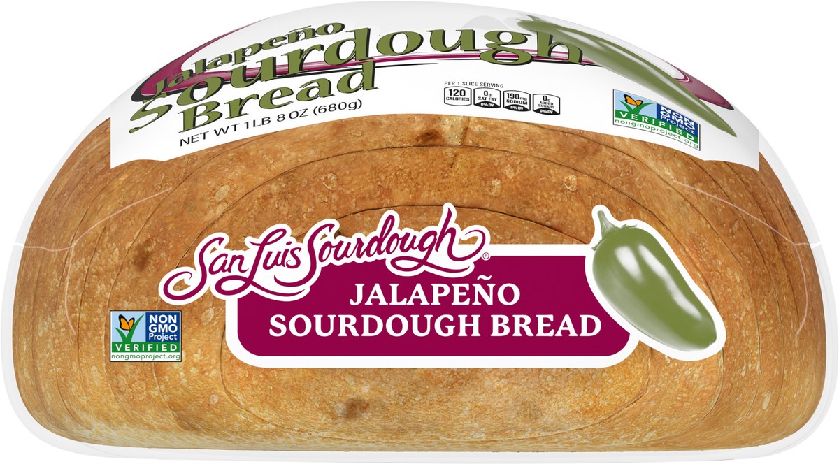 Baked with simple ingredients, no preservatives, and non-GMO Project Verified, San Luis Jalapeño Sourdough Bread delivers great tasting, authentic California sourdough with heat!