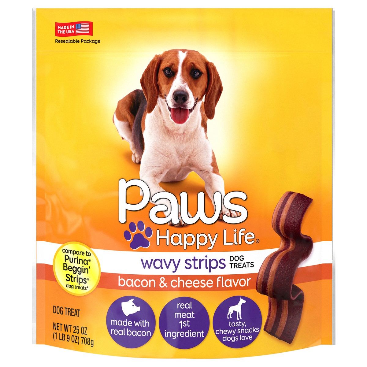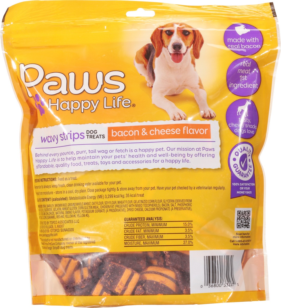 Paws Happy Life Wavy Strips Bacon & Cheese Flavor Dog Treats 25 oz